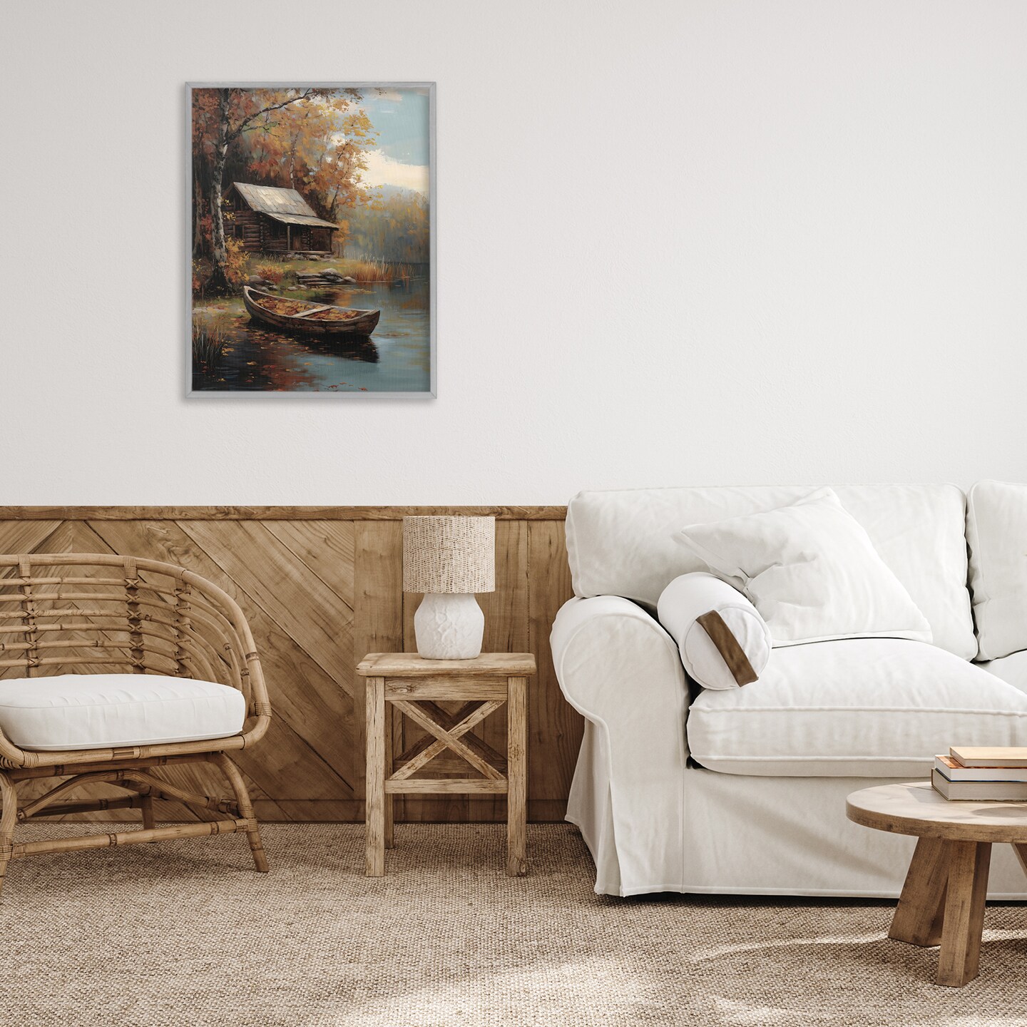 Stupell Industries Autumn Cabin Canoe with Leaves Framed Giclee, design by Arlington Prints