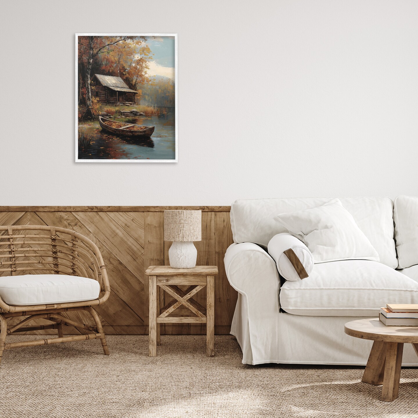 Stupell Industries Autumn Cabin Canoe with Leaves Framed Giclee, design by Arlington Prints