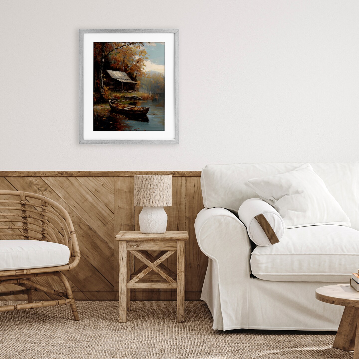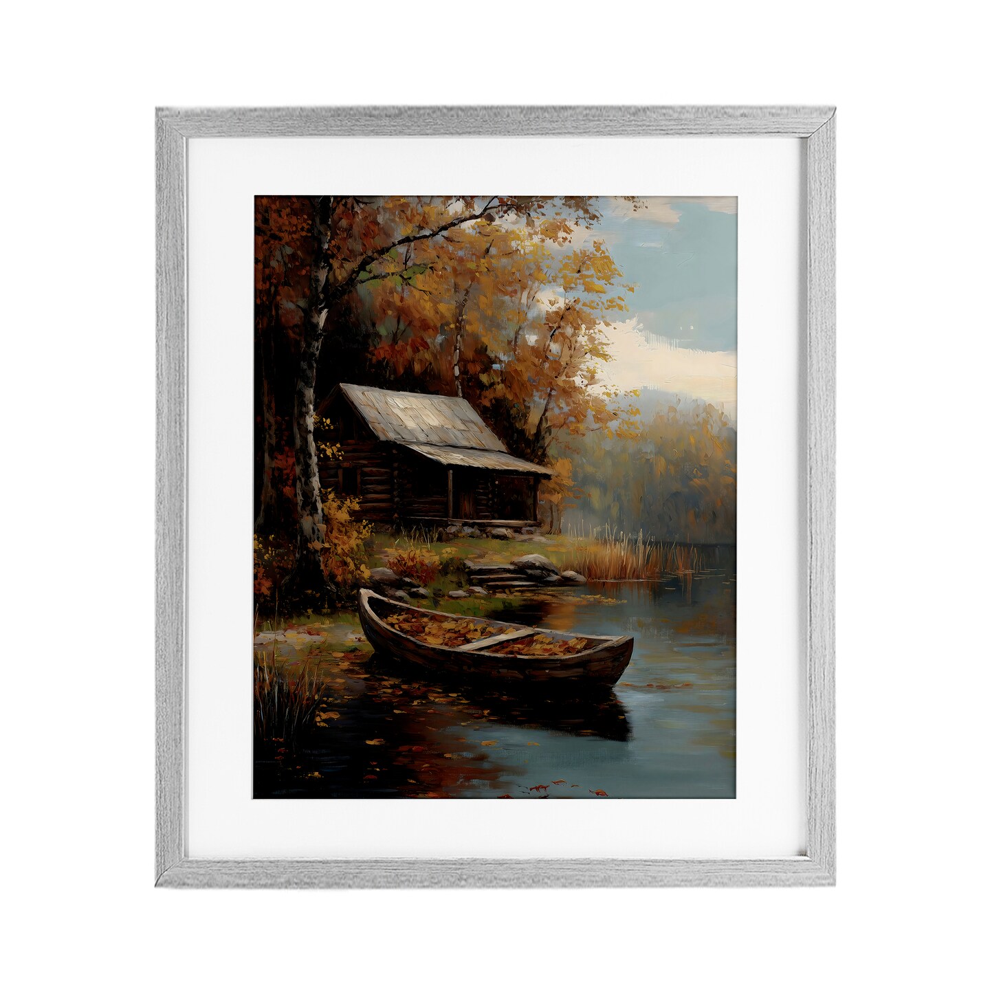 Stupell Industries Autumn Cabin Canoe with Leaves Framed Print Under Glass, design by Arlington Prints