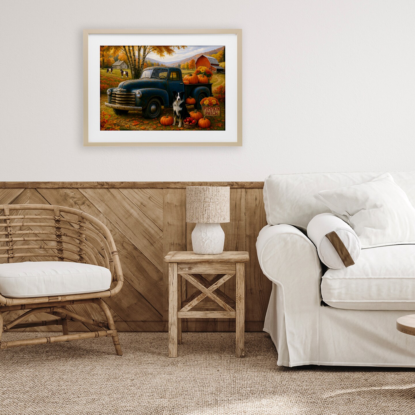Stupell Industries Autumnal Farmland Collie Dog Framed Print Under Glass, design by Tom Crehan