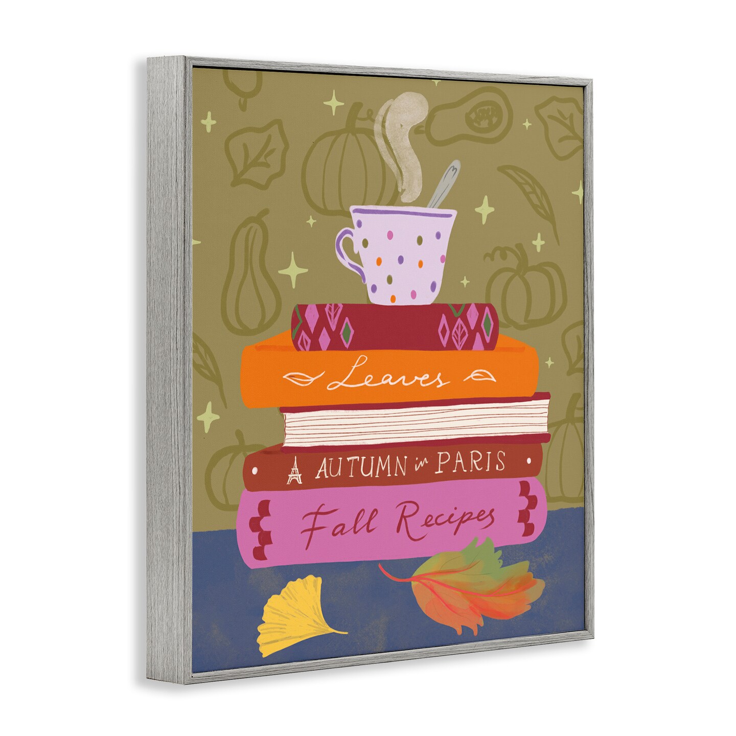 Stupell Industries Autumnal Mug on Bookstack Framed Giclee Wall Art Design by Be Ni La