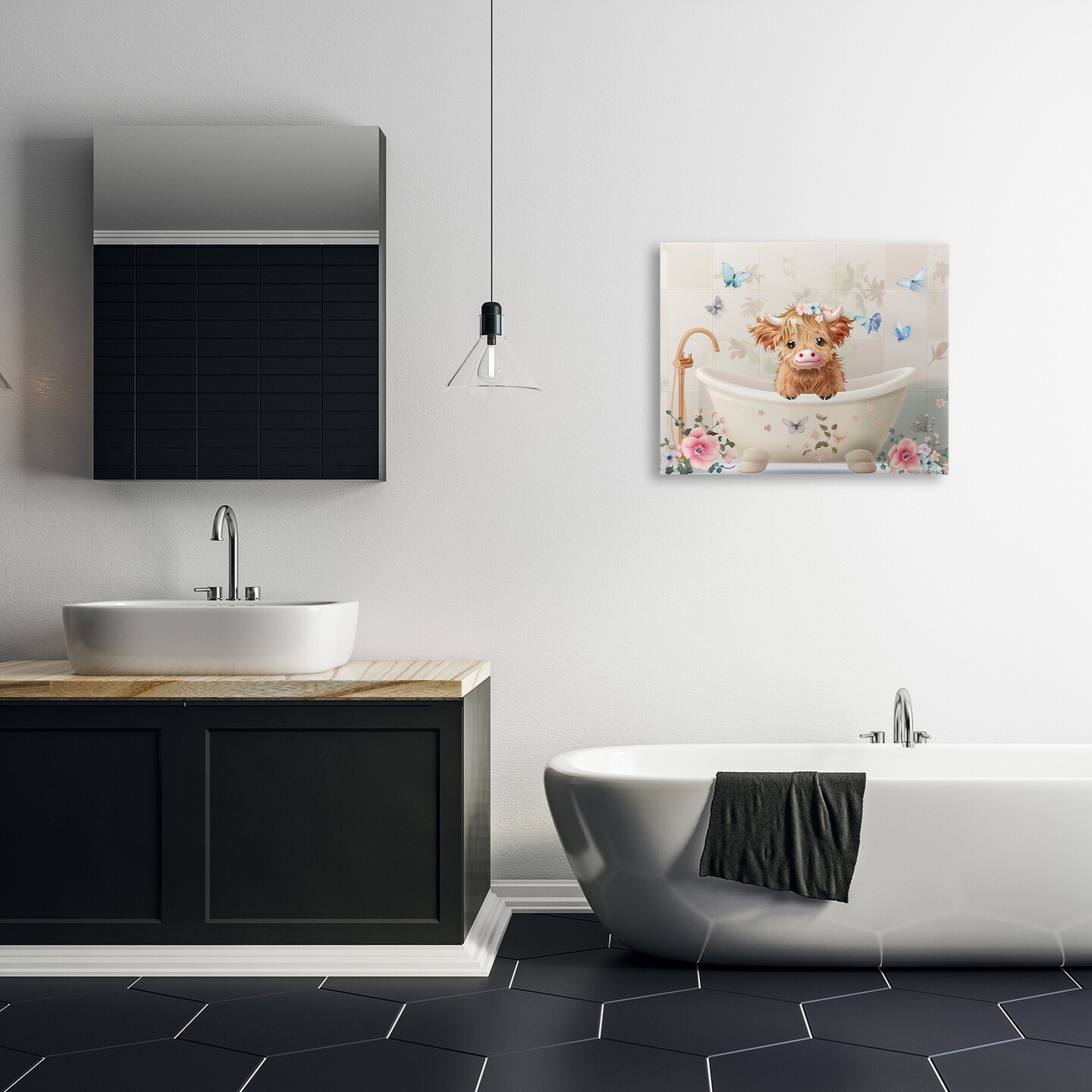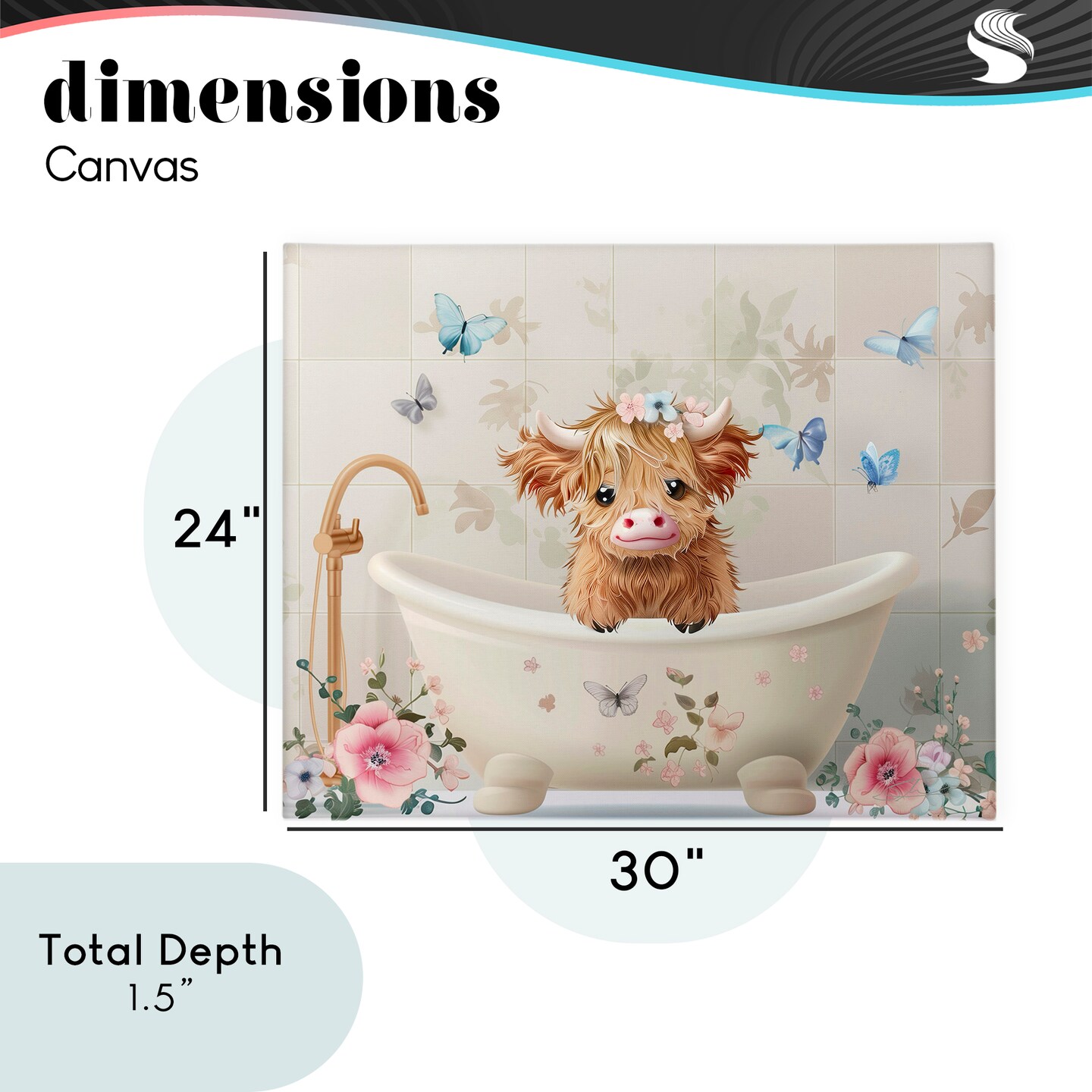 Stupell Industries Baby Cattle in Floral Tub Canvas, design by Shawna Stewart
