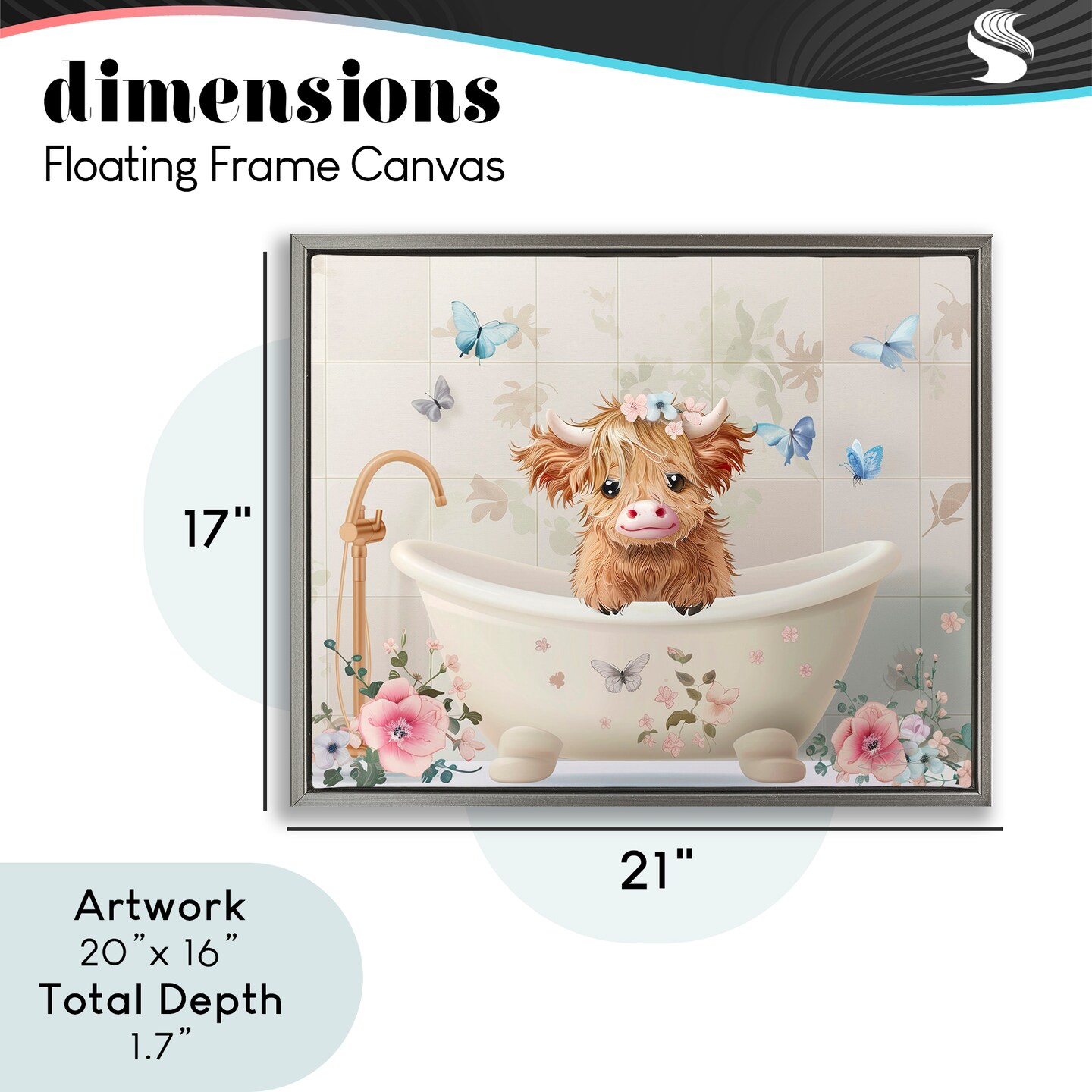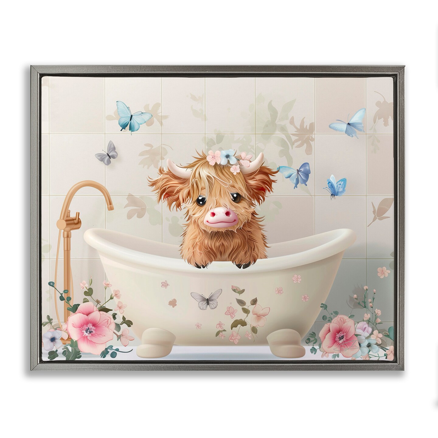 Stupell Industries Baby Cattle in Floral Tub Floating Frame, design by Shawna Stewart