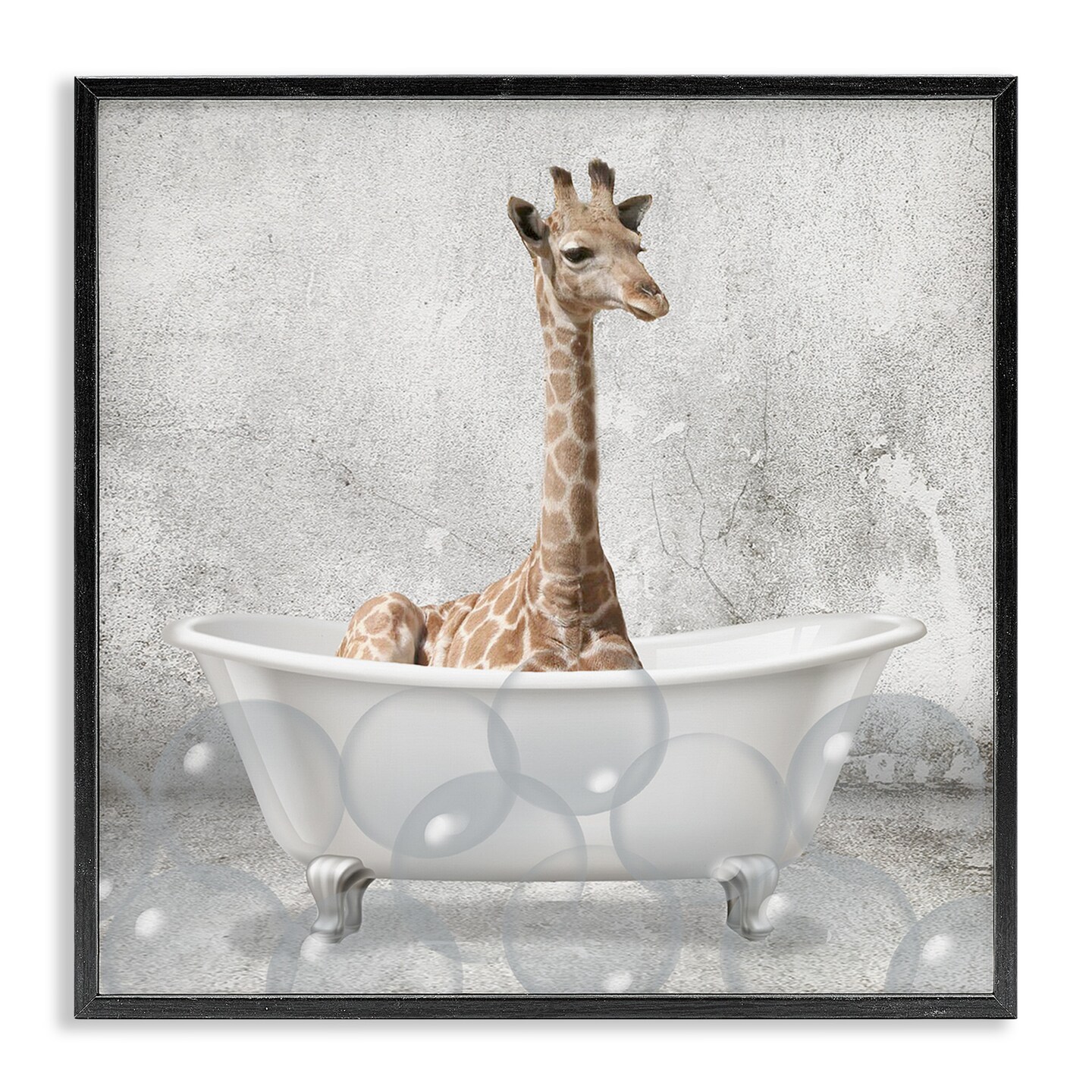 Stupell Industries Baby Giraffe Bath Time Framed Giclee Art