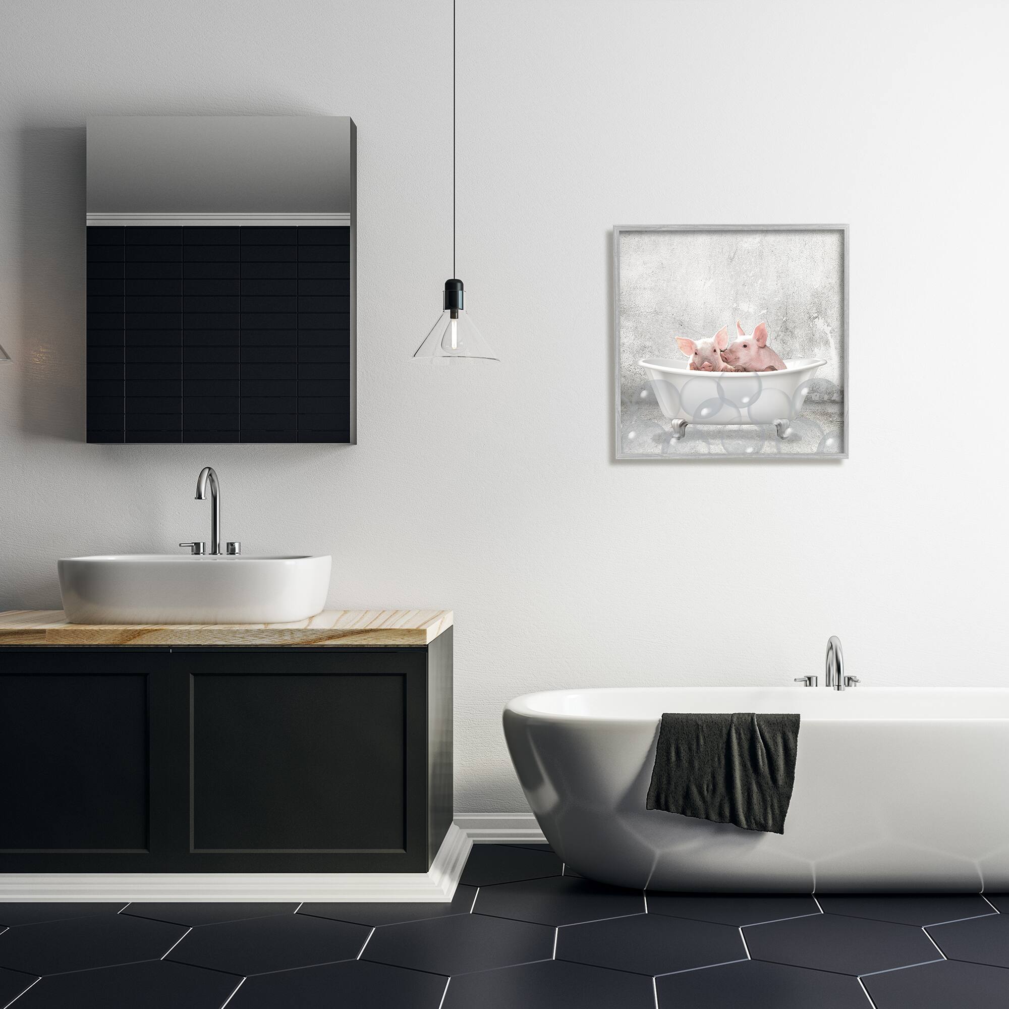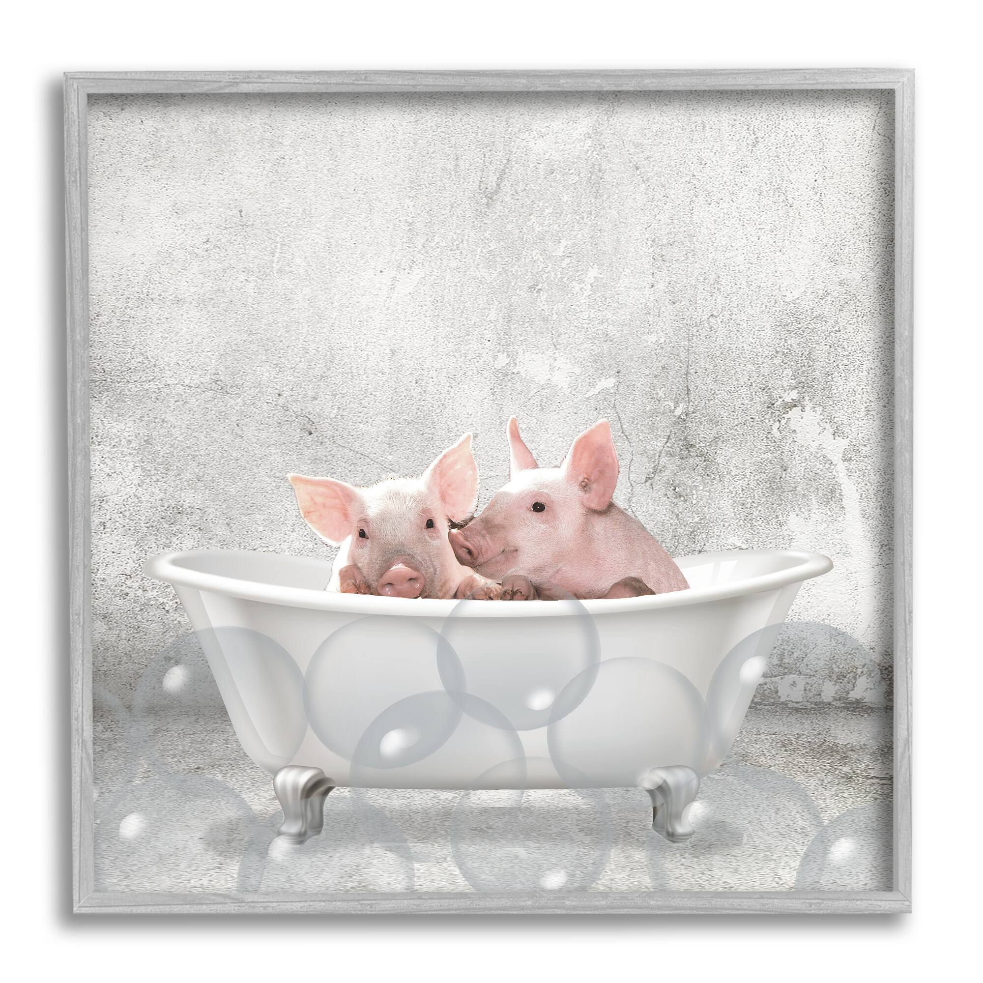 Stupell Industries Baby Piglets Bath Time Wall Art in Gray Frame