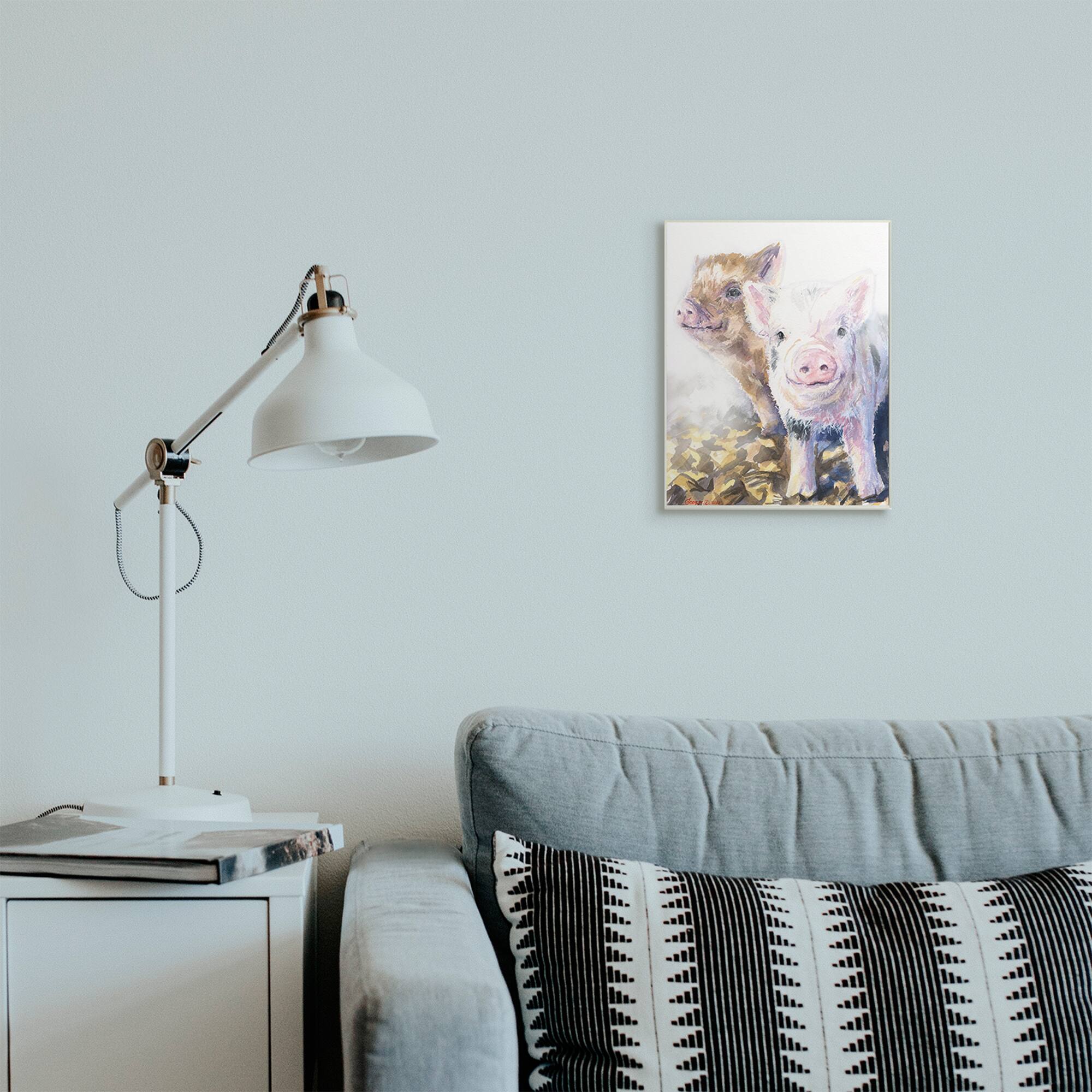 Stupell Industries Baby Piglets Smiling Adorable Farm Animals Wood Wall Plaque