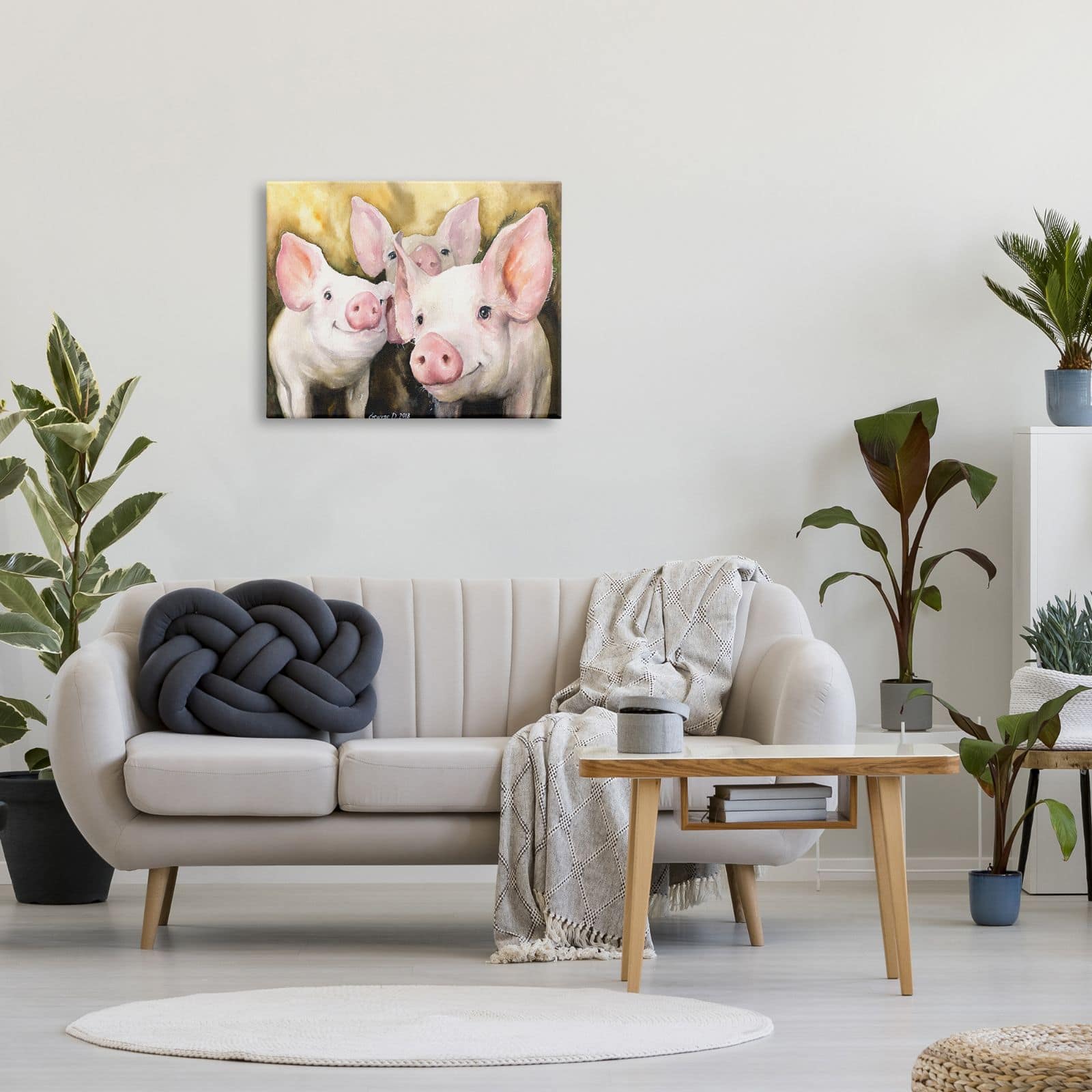 Stupell Industries Baby Pigs Animal Yellow Watercolor Painting Canvas Wall Art