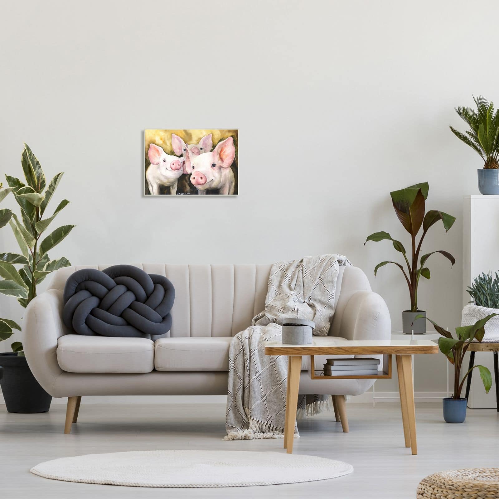 Stupell Industries Baby Pigs Animal Yellow Watercolor Painting Wood Wall Plaque