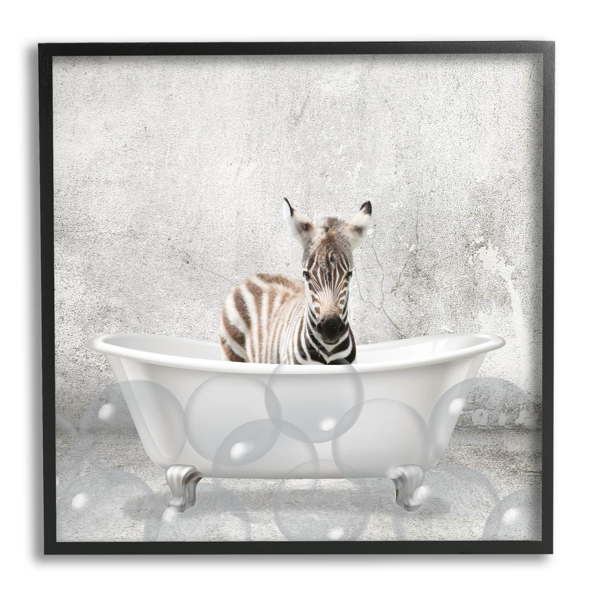 Stupell Industries Baby Zebra Bath Time Wall Art in Black Frame