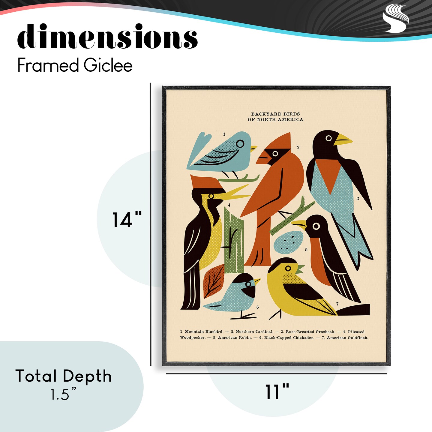 Stupell Industries Backyard Birds Midcentury Modern Framed Giclee, design by Renea L. Thull