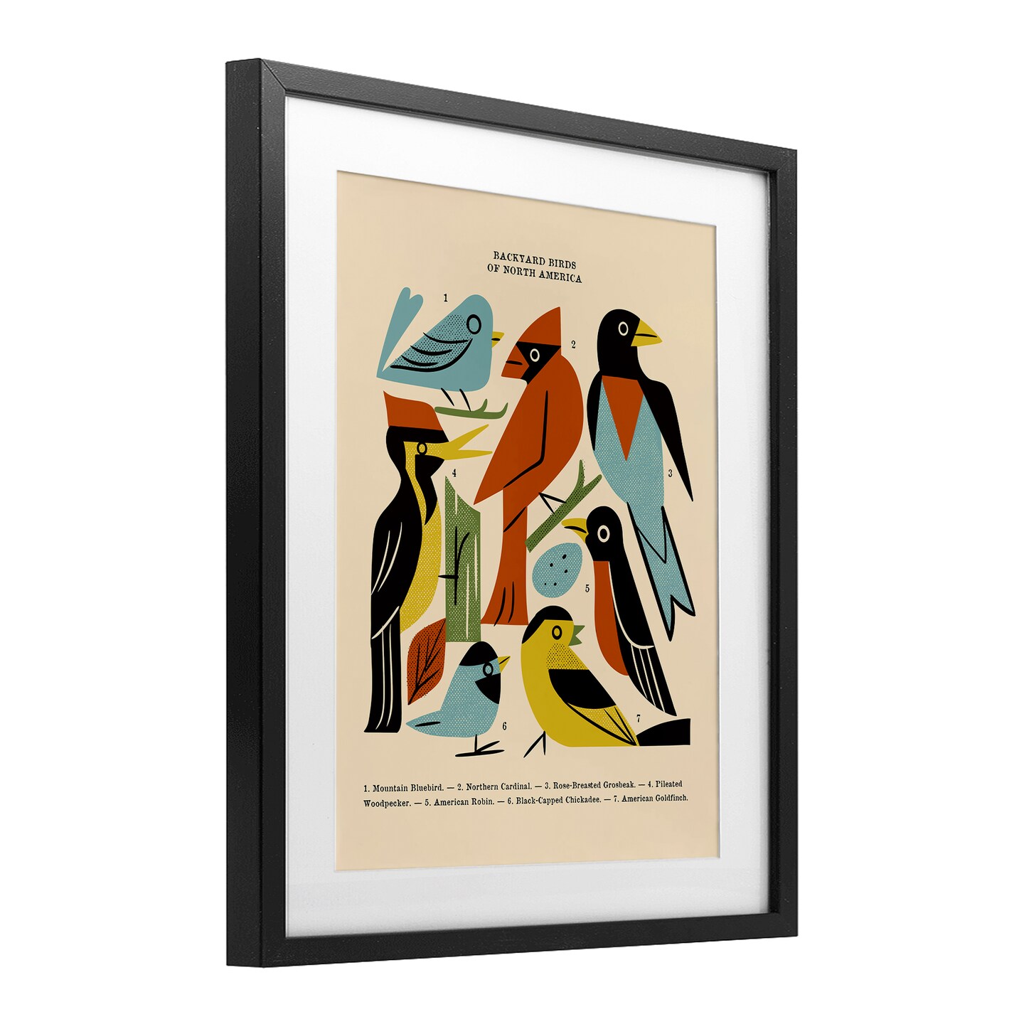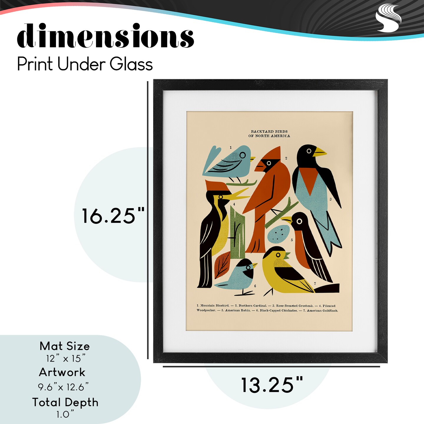 Stupell Industries Backyard Birds Midcentury Modern Framed Print Under Glass, design by Renea L. Thull