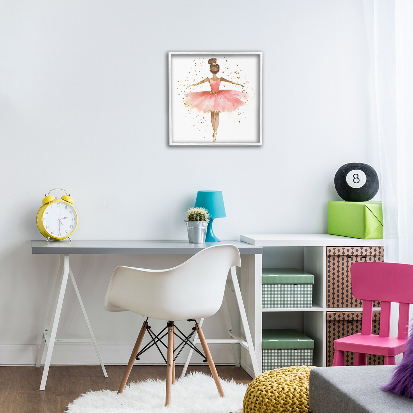 Stupell Industries Ballerina with Gold Glitter Framed Giclee, design by Creative Studio