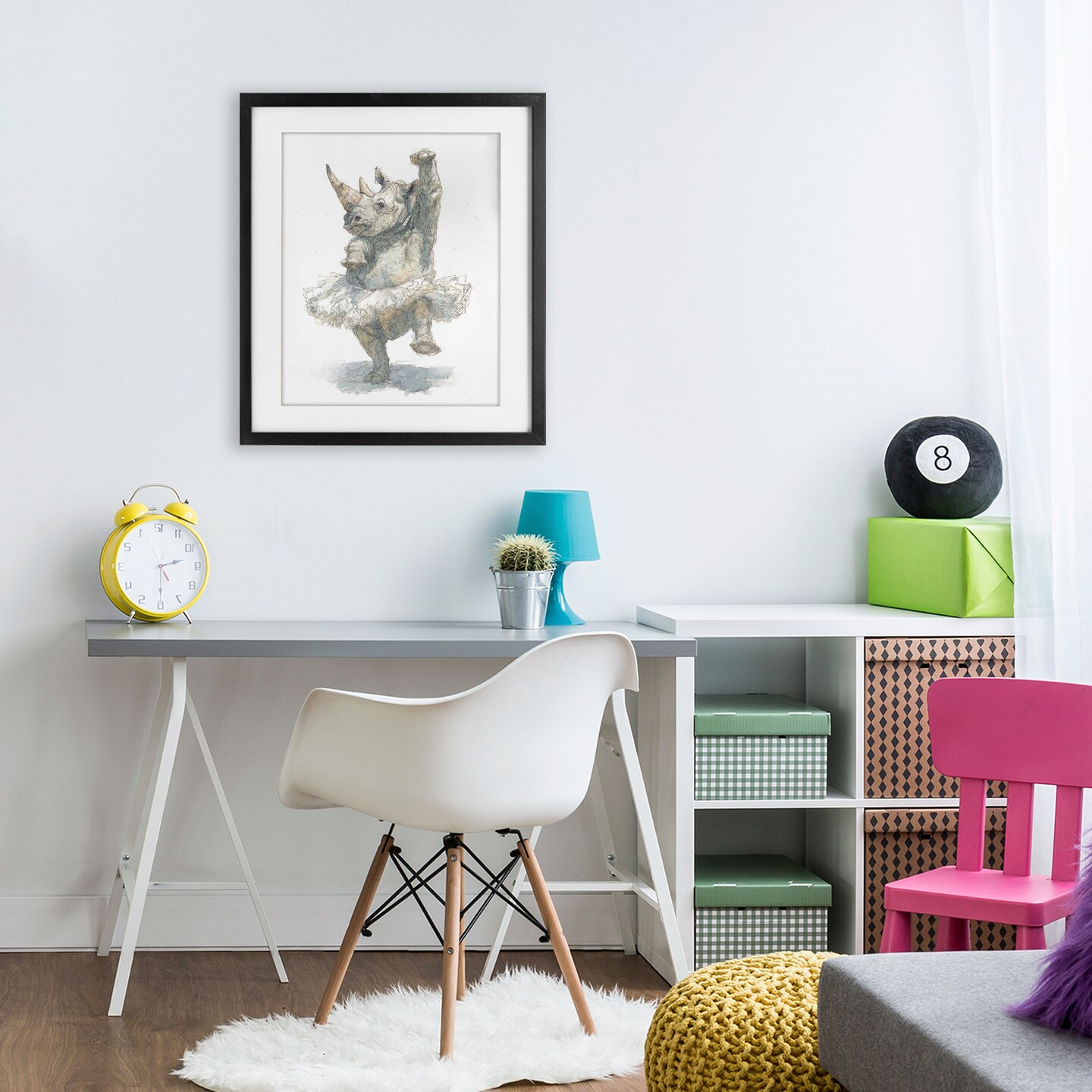 Stupell Industries Ballet Rhino Tutu Framed Print Under Glass, design by Ziwei Li