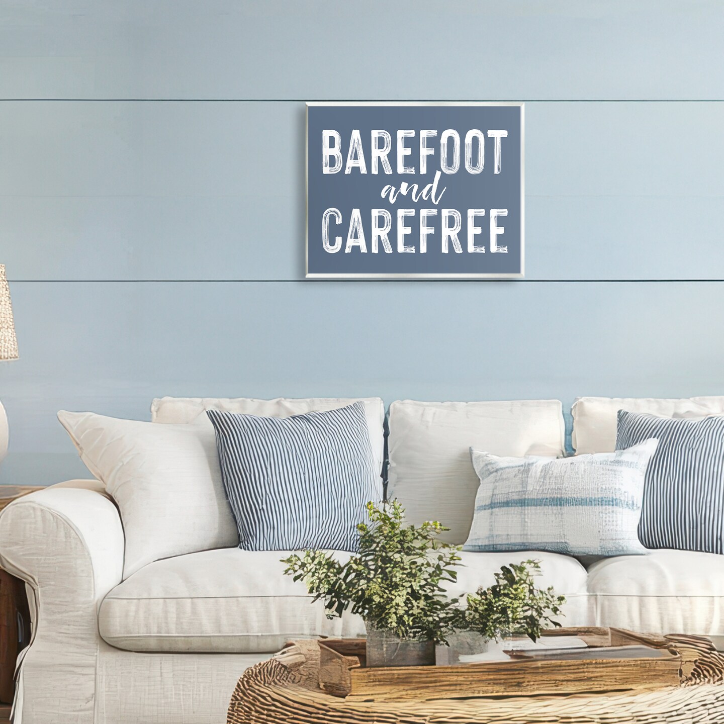 Stupell Industries Barefoot & Carefree Blue Wall Plaque, design by Lettered and Lined