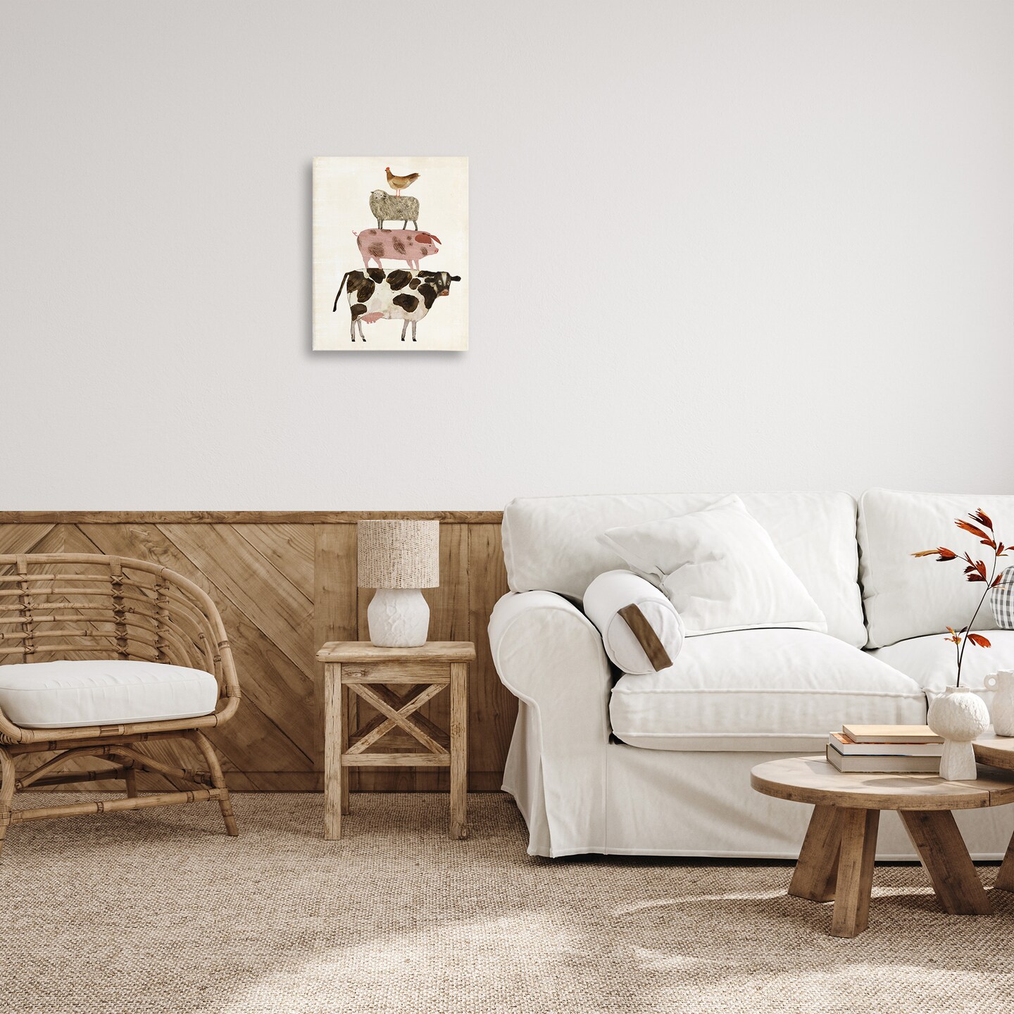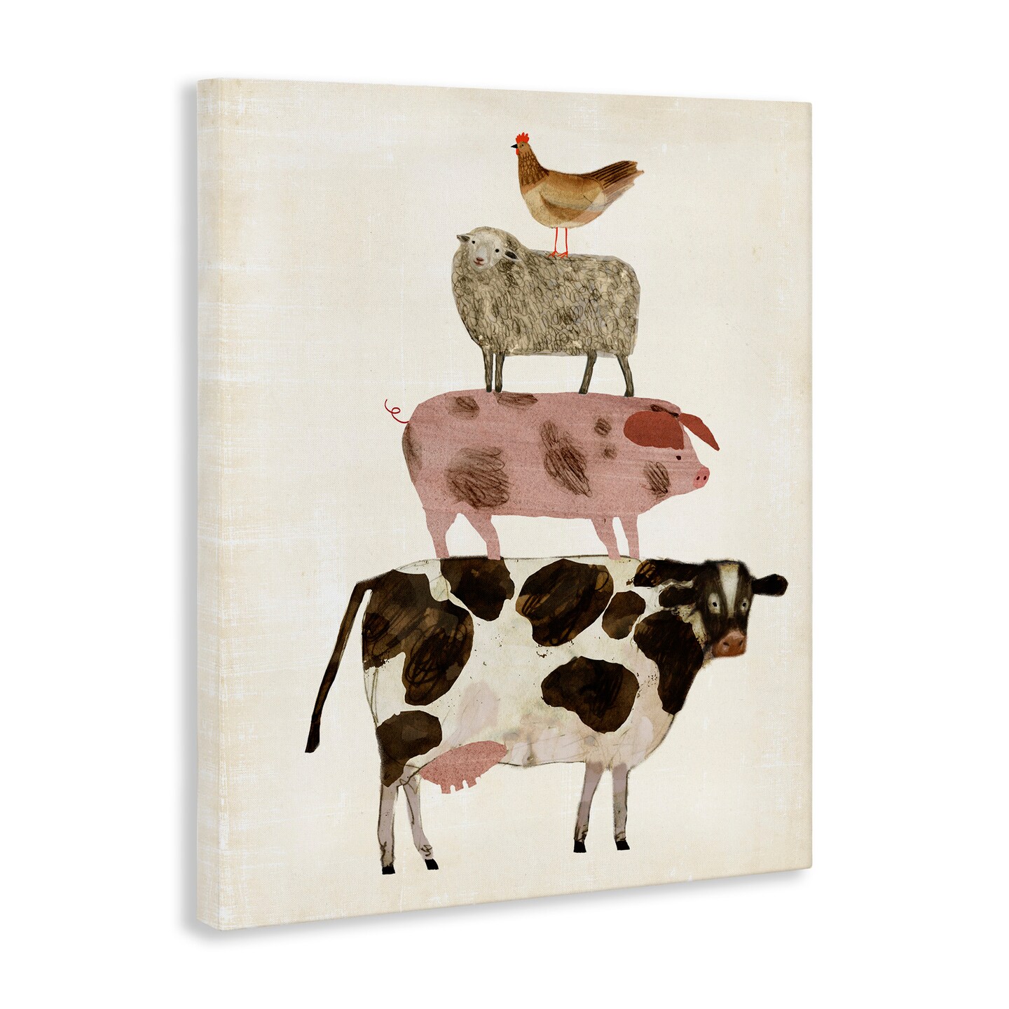 Stupell Industries Barnyard Buds Stacked Animals Canvas Wall Art