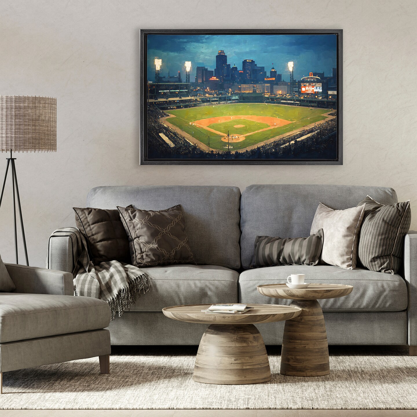 Stupell Industries Baseball Stadium at Night Floating Frame, design by Arlington Prints