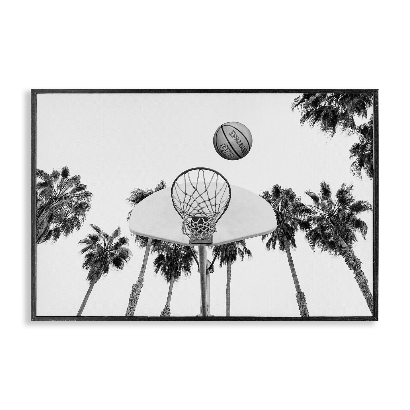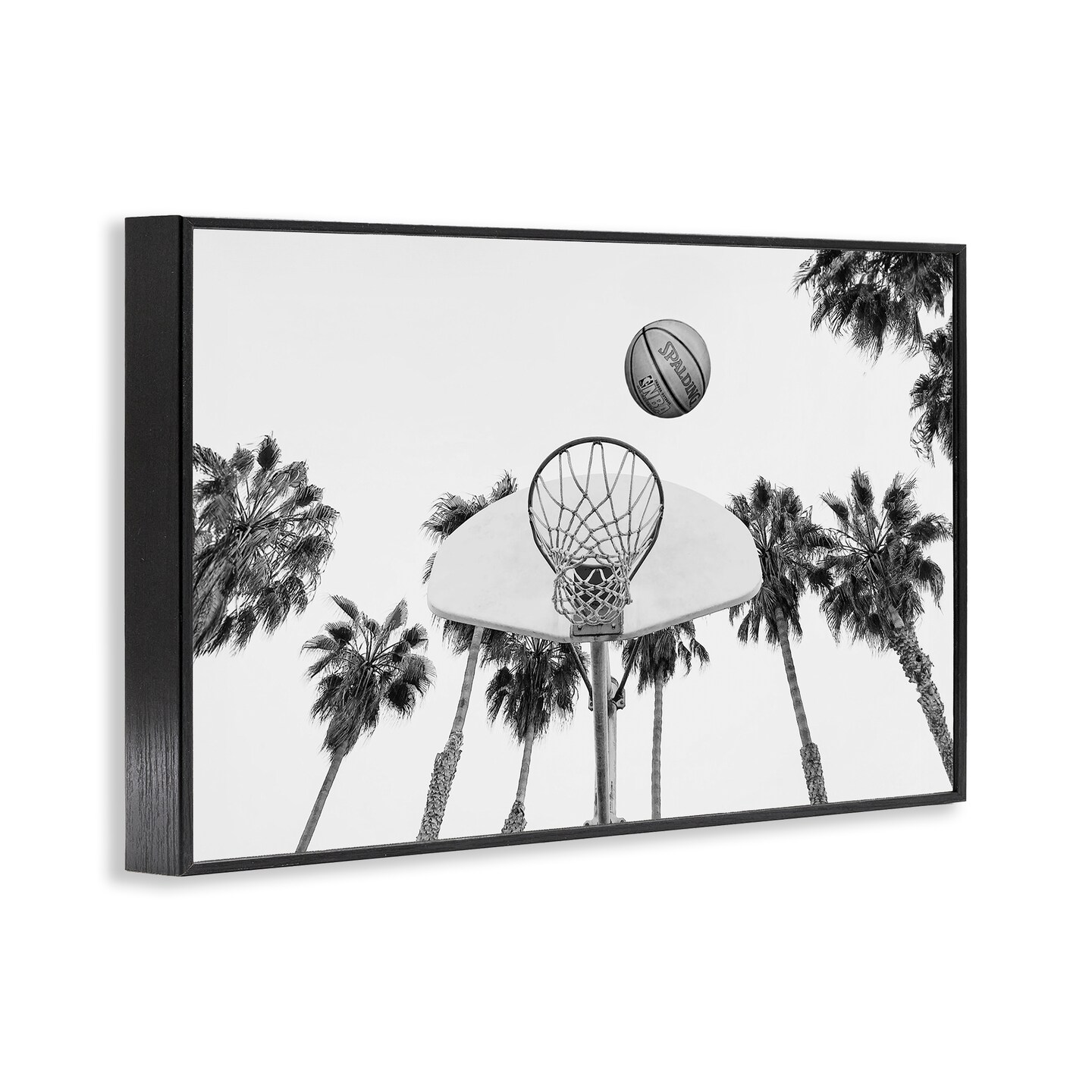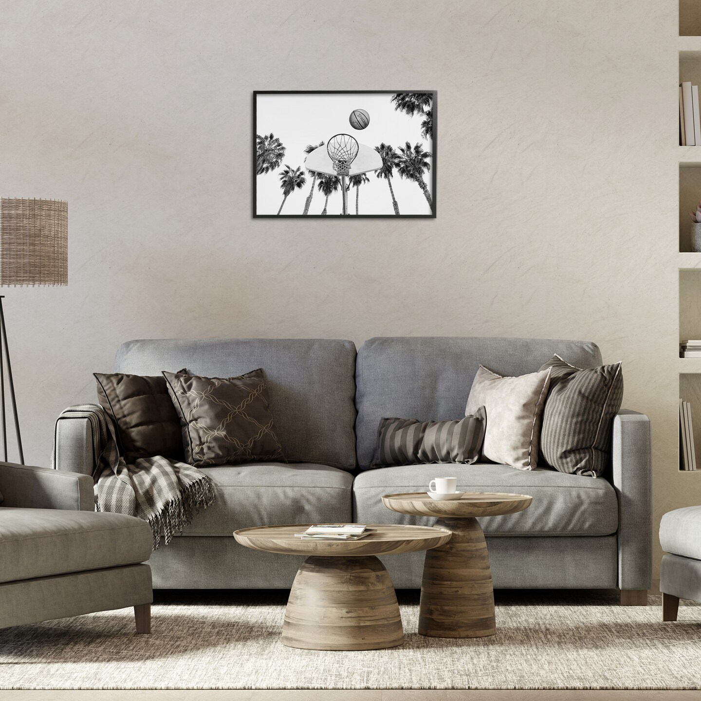 Stupell Industries Basketball Hoop with Palms Framed Giclee Wall Art Design by Sisi and Seb