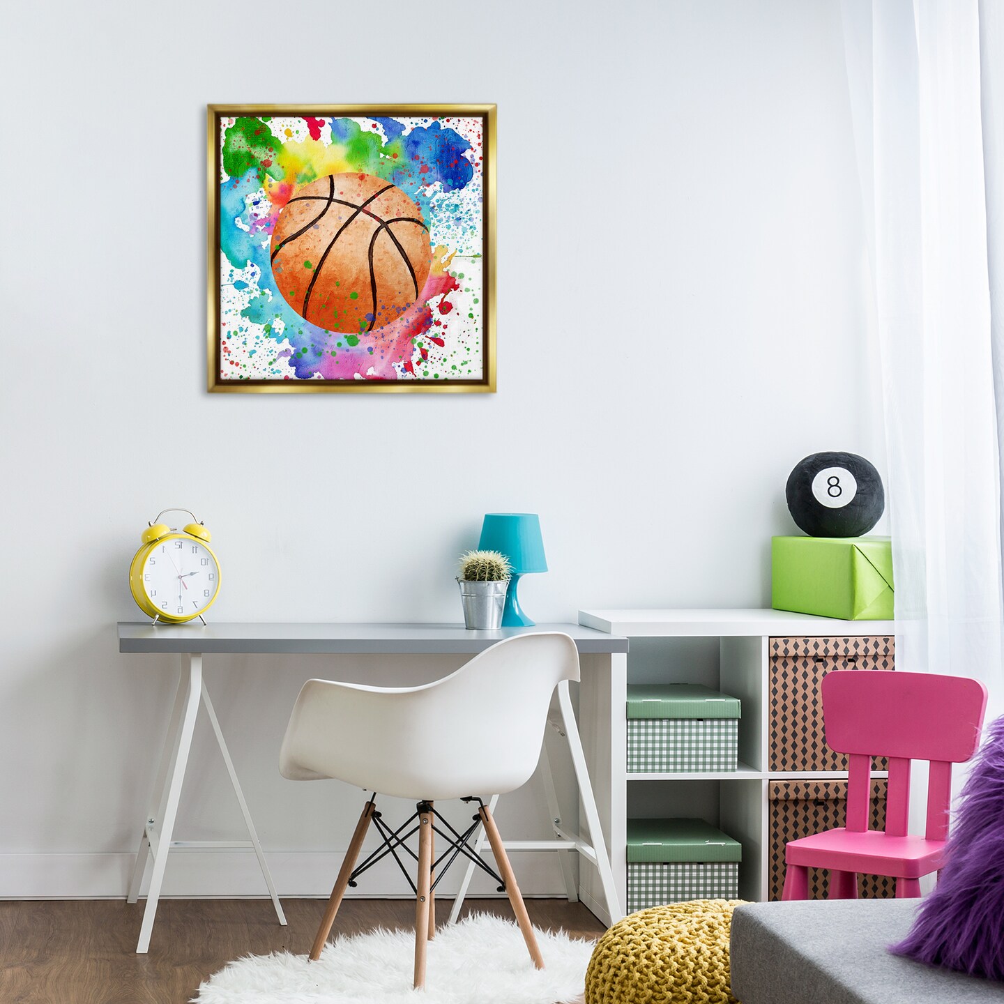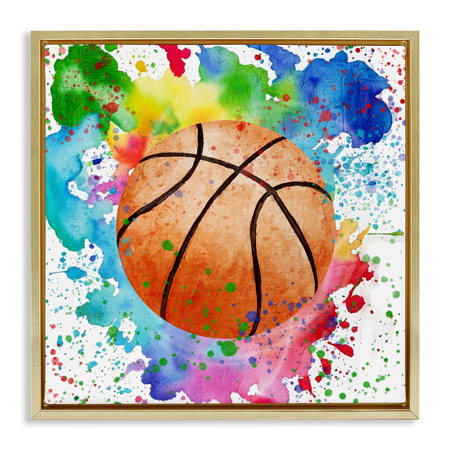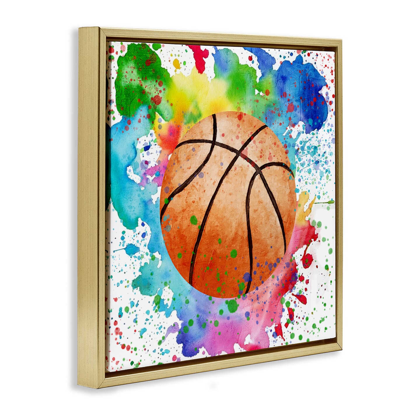 Stupell Industries Basketball with Bright Splash Floating Frame Design by Kim Allen