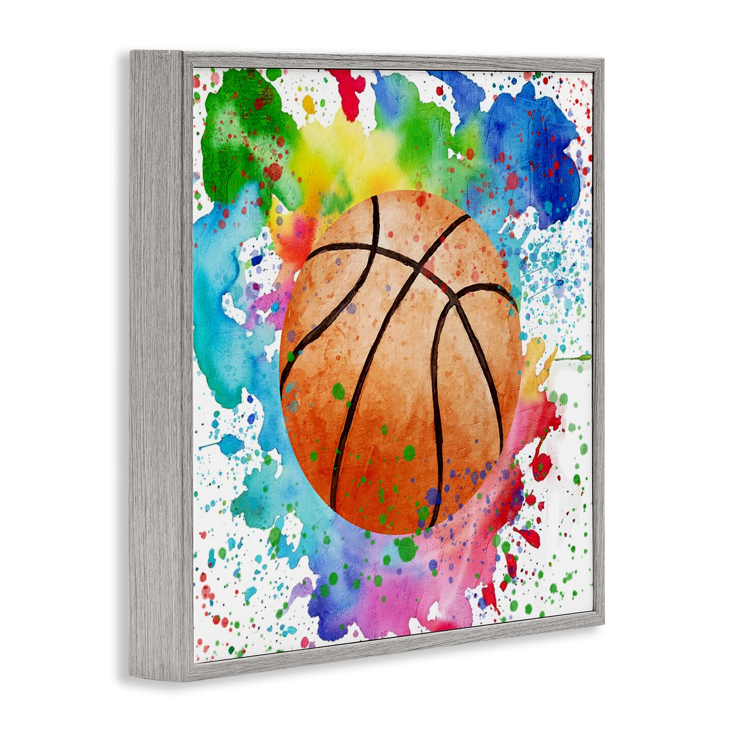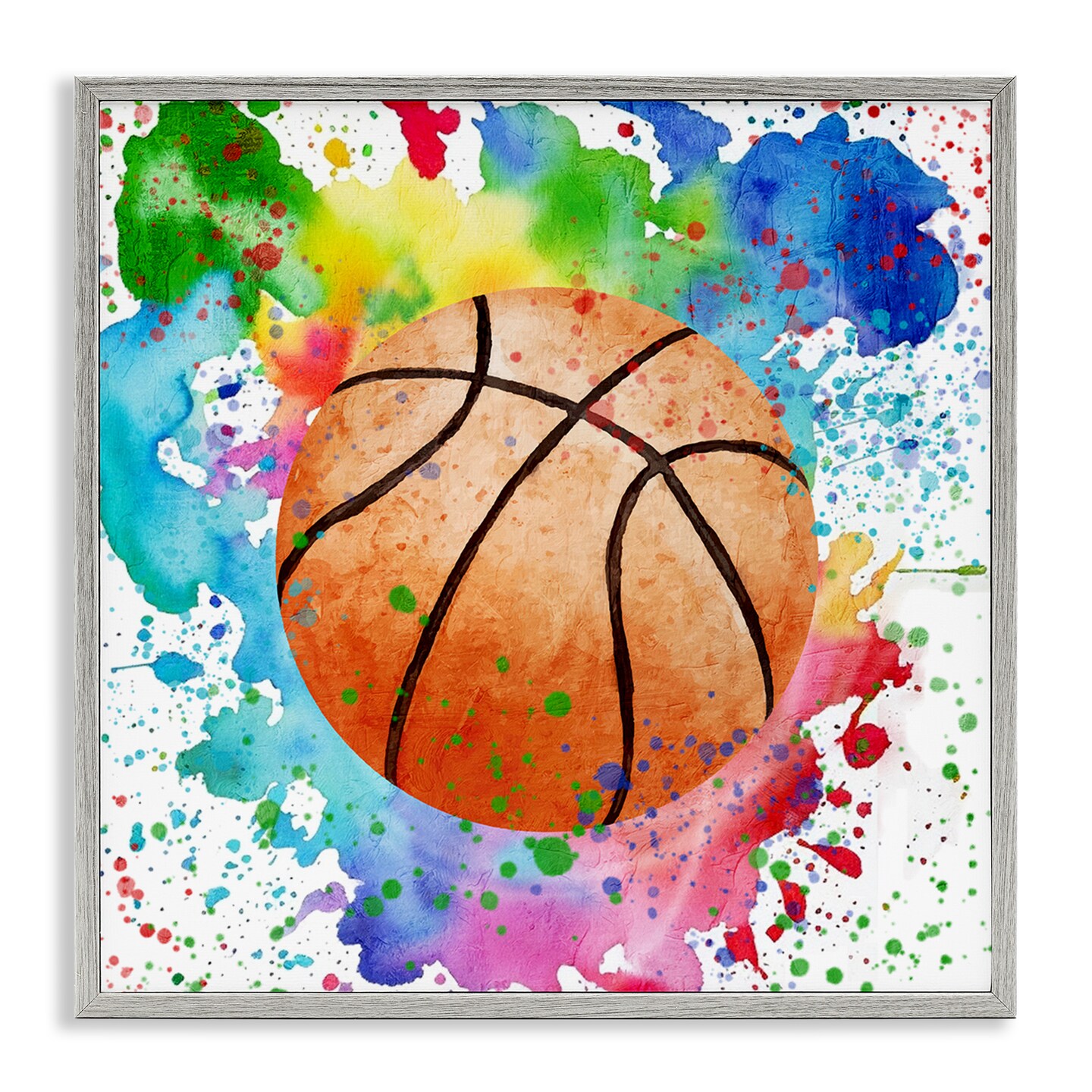 Stupell Industries Basketball with Bright Splash Framed Giclee Design by Kim Allen