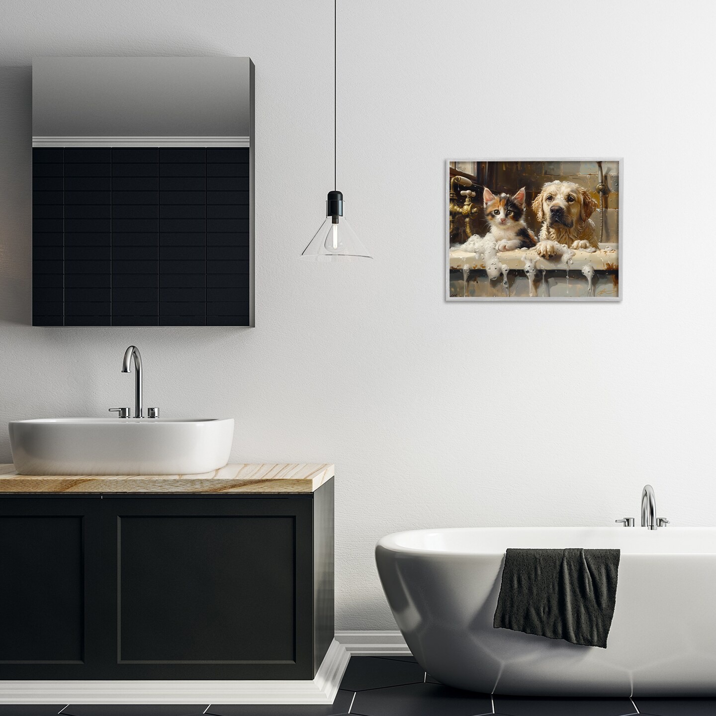 Stupell Industries Bath Buddies Cat & Dog Framed Giclee, design by Shawna Stewart