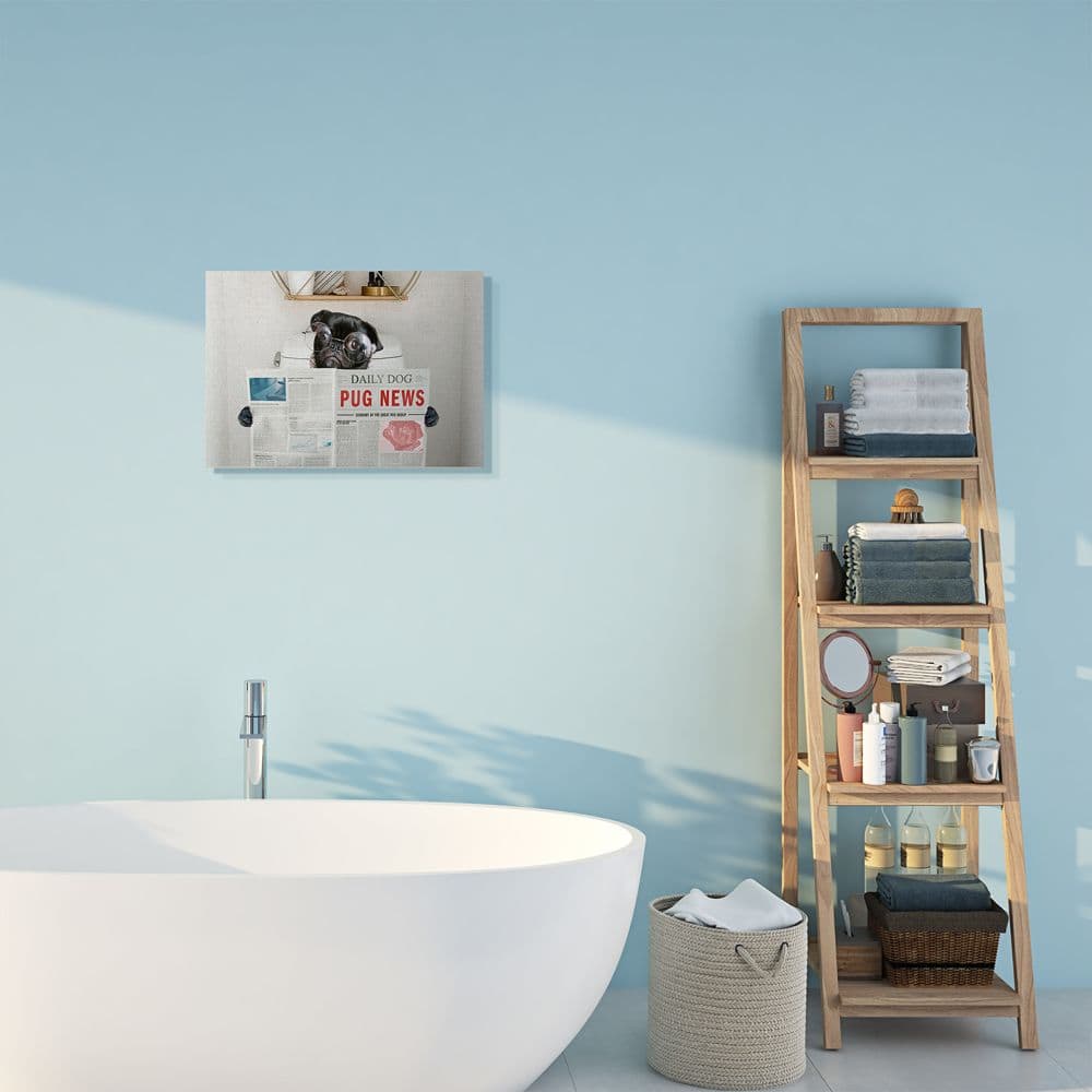 Stupell Industries Bathroom Pug Daily Toilet Briefing Dog Humor Canvas Wall Art