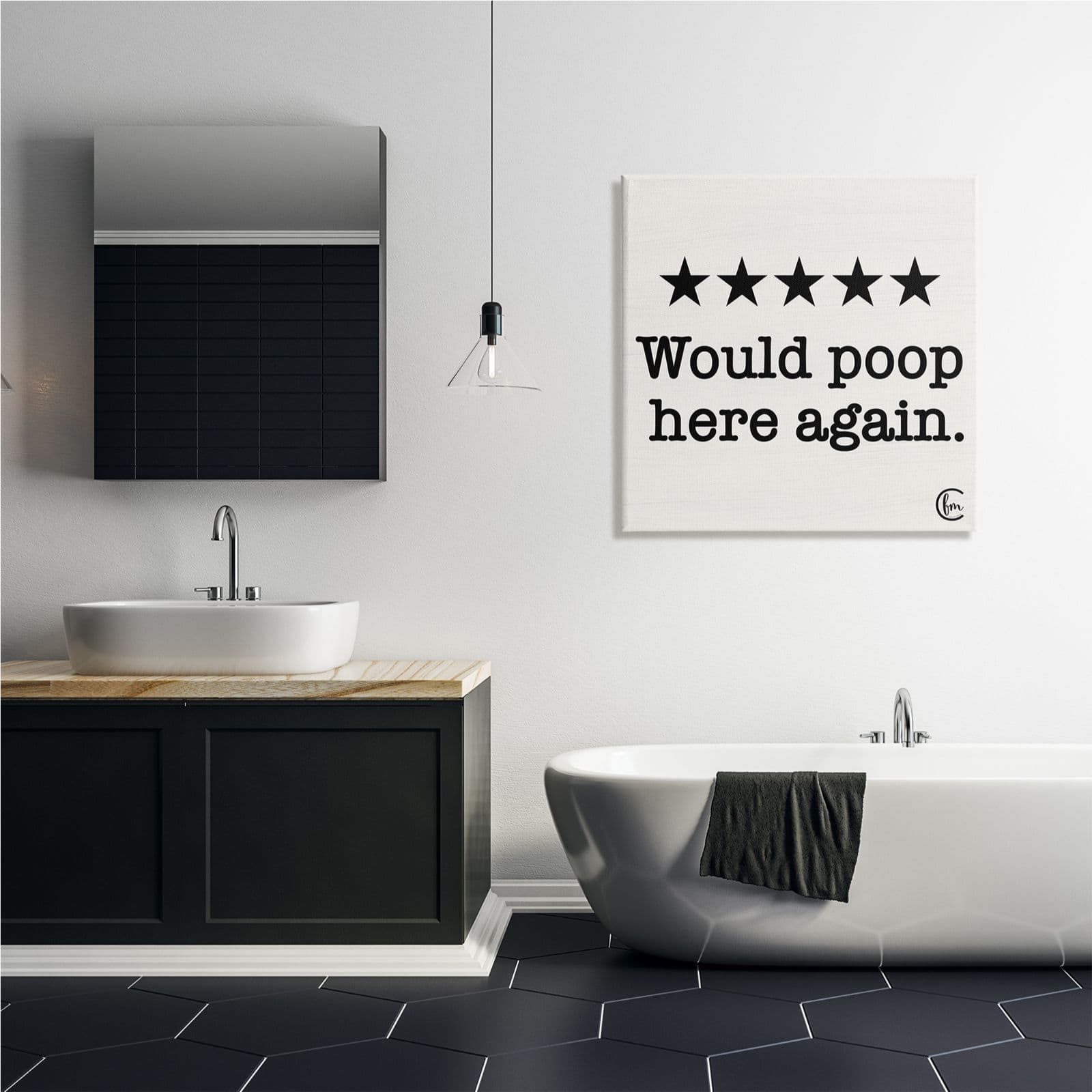 Stupell Industries Bathroom Rating Five Starts Would Poop Here Again Black and White Sign Canvas Wall Art