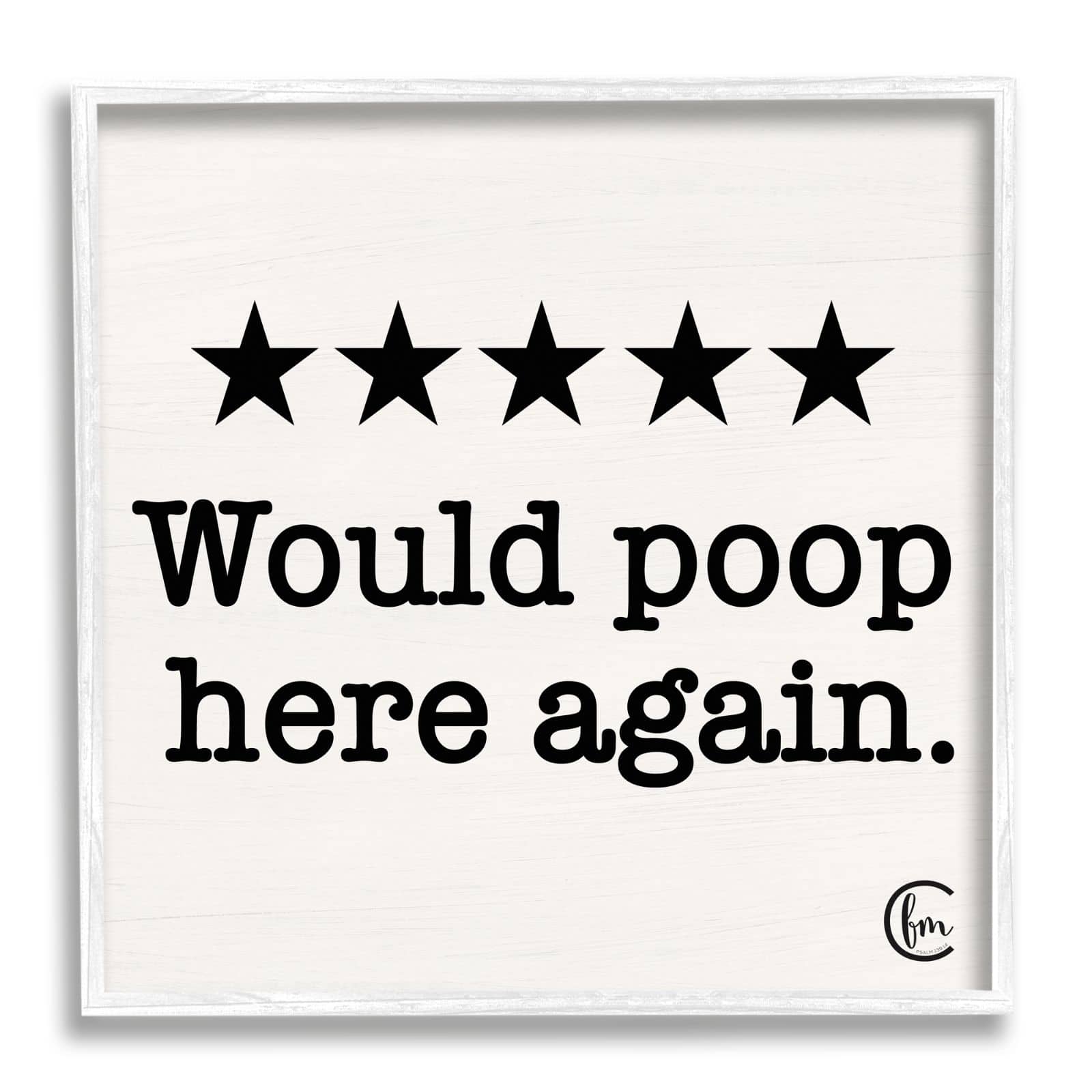 Stupell Industries Bathroom Rating Five Starts Would Poop Here Again Black and White Sign Framed Wall Art