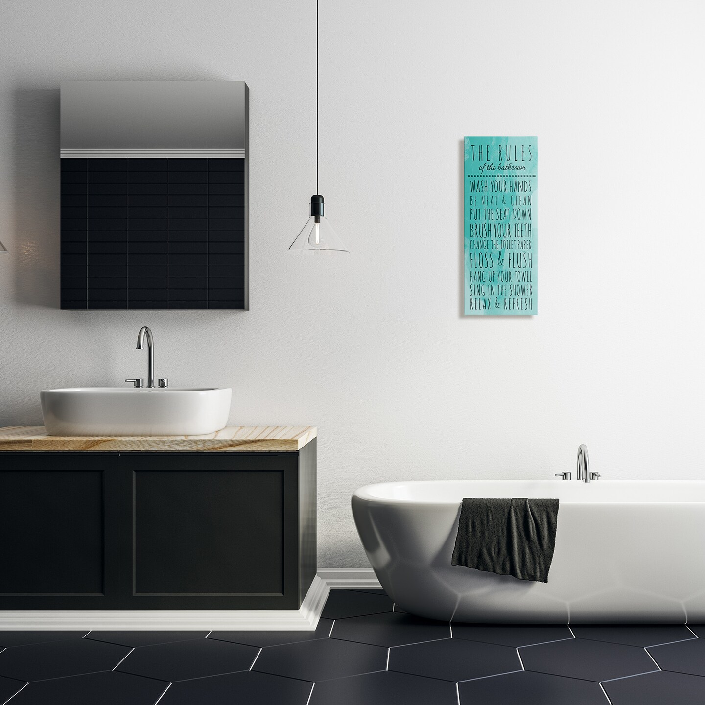 Stupell Industries Bathroom Rules on Turquoise Canvas Wall Art