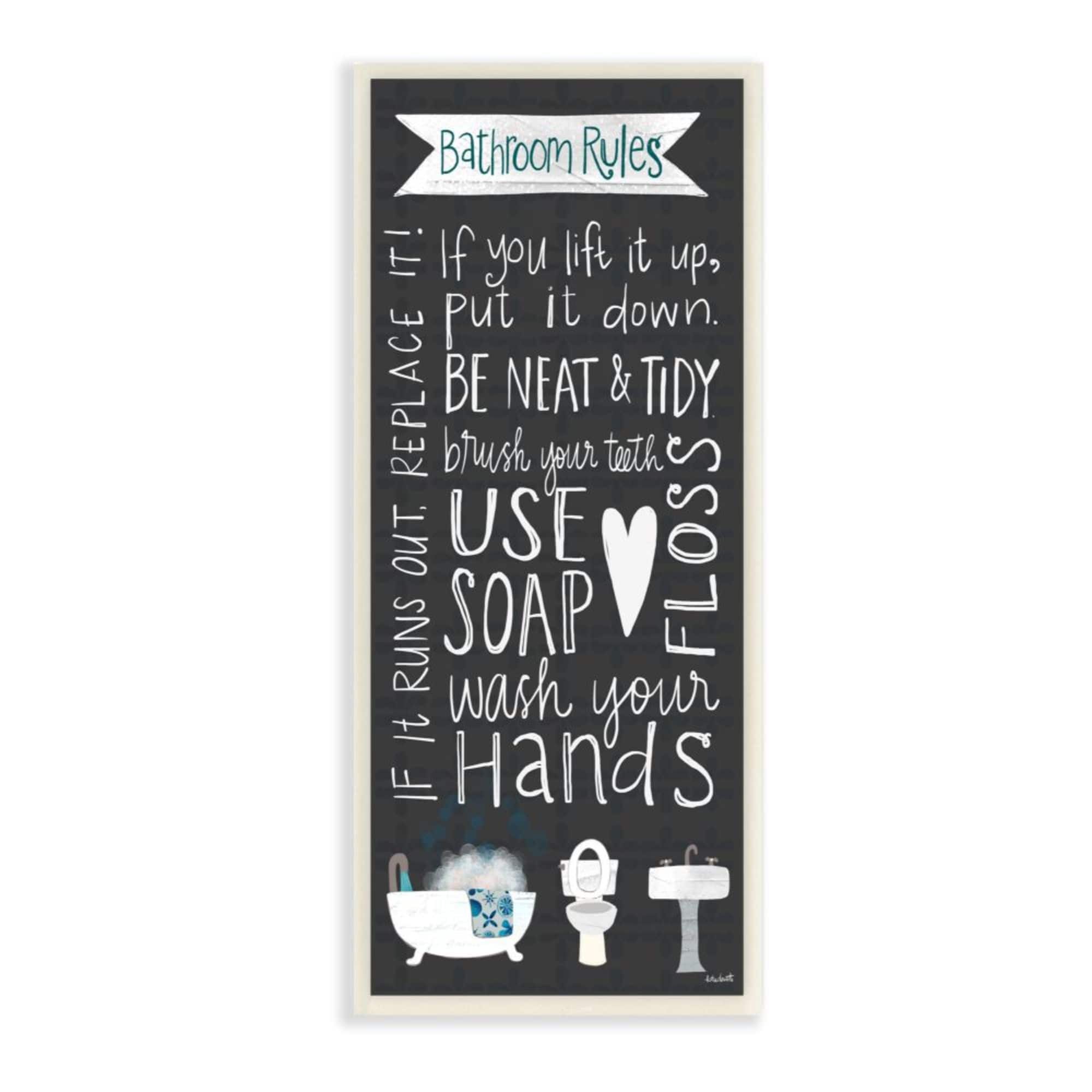 Stupell Industries Bathroom Rules Sign Whimsical Tub Toilet Sink Wood Wall Plaque