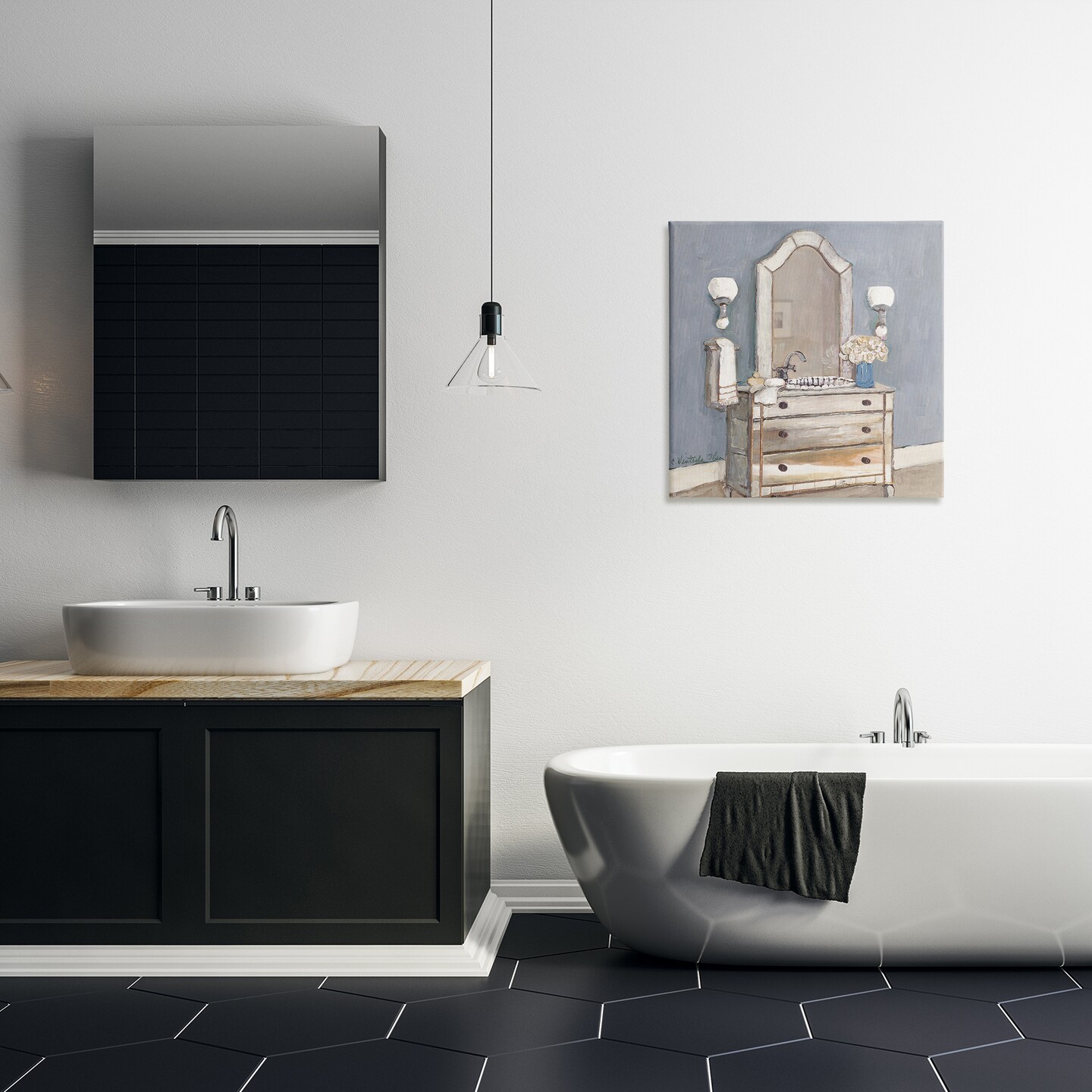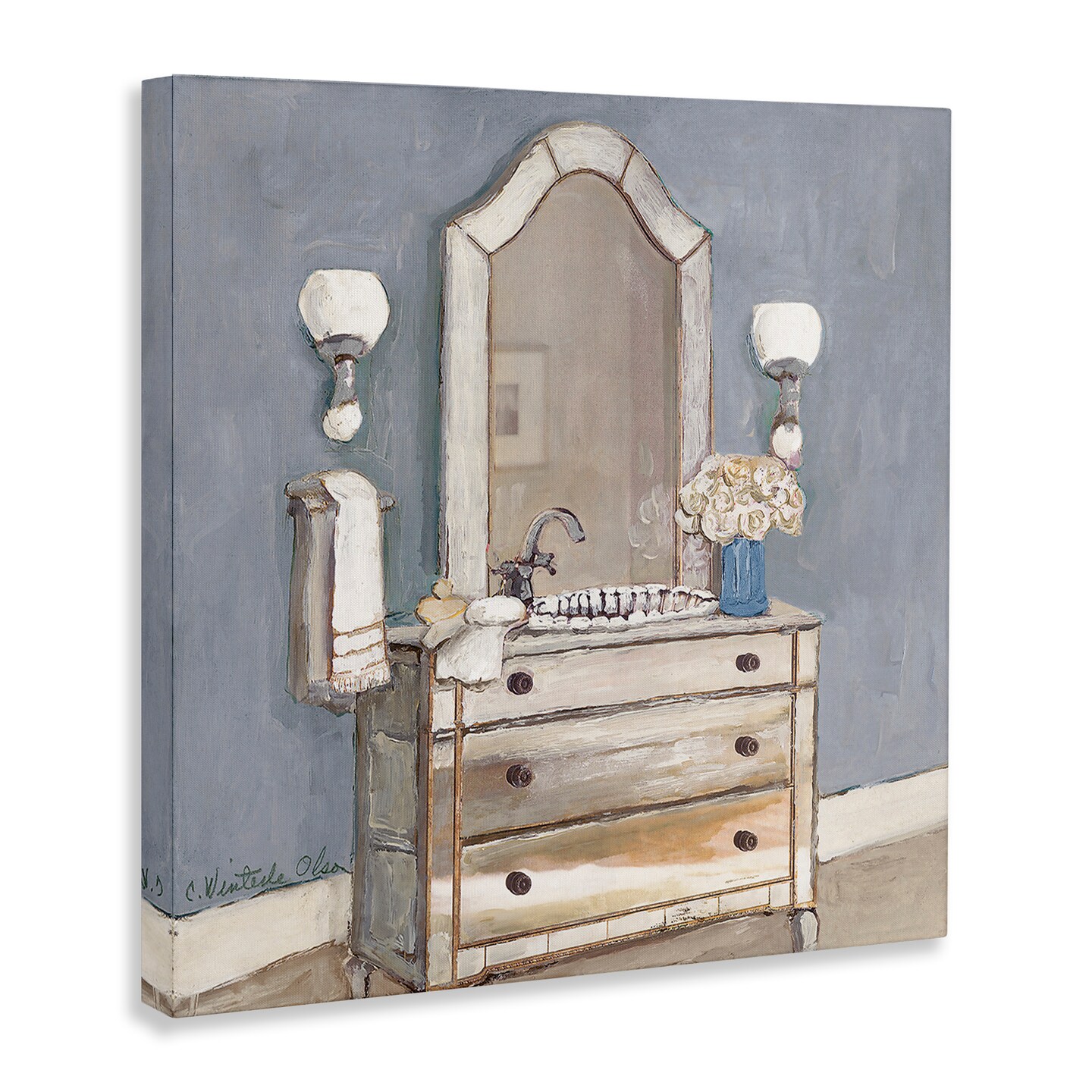 Stupell Industries Bathroom Sink & Mirror Canvas Design by Charlene Olson