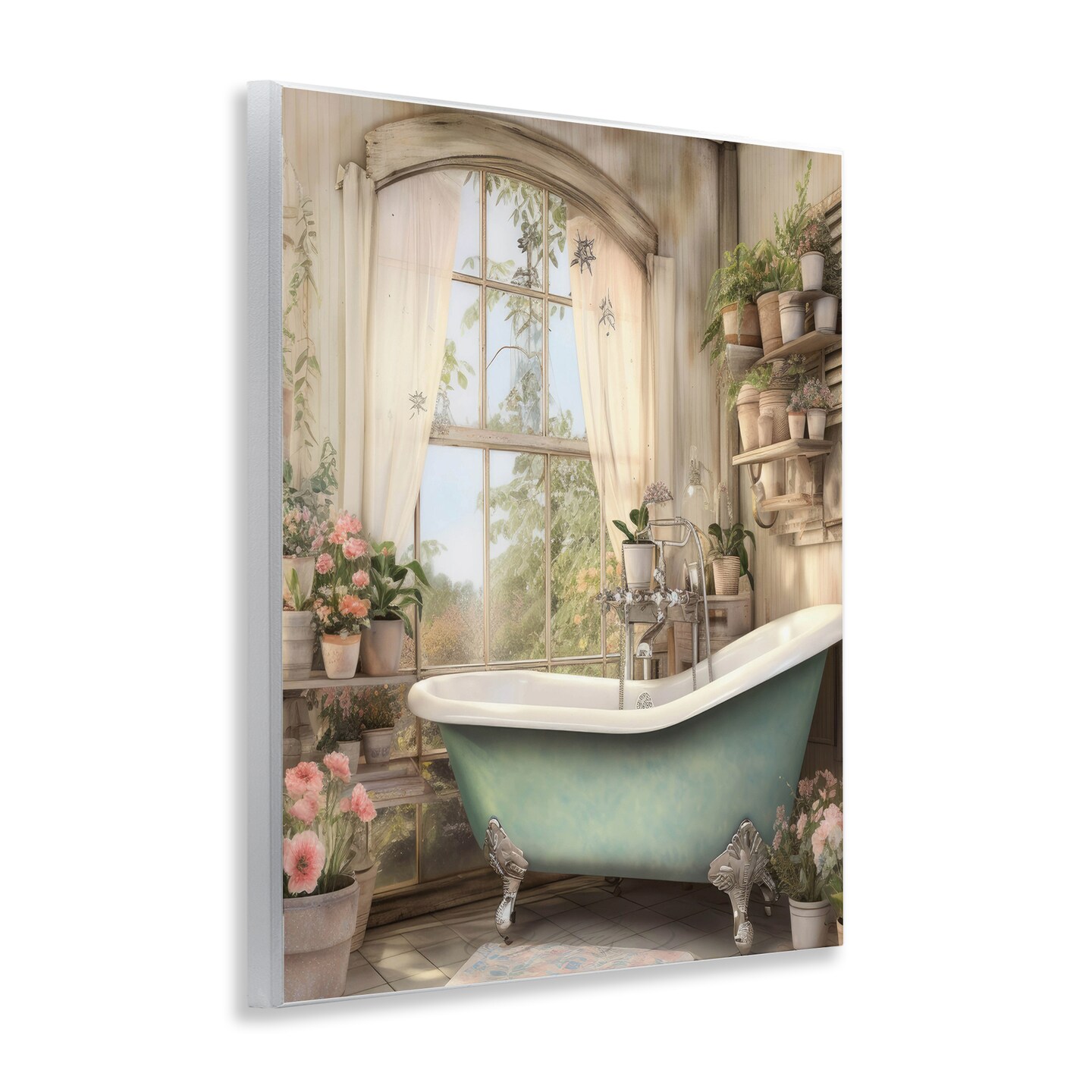 Stupell Industries Bathroom with Floral Filled Shelves Wall Plaque, design by Lettered and Lined