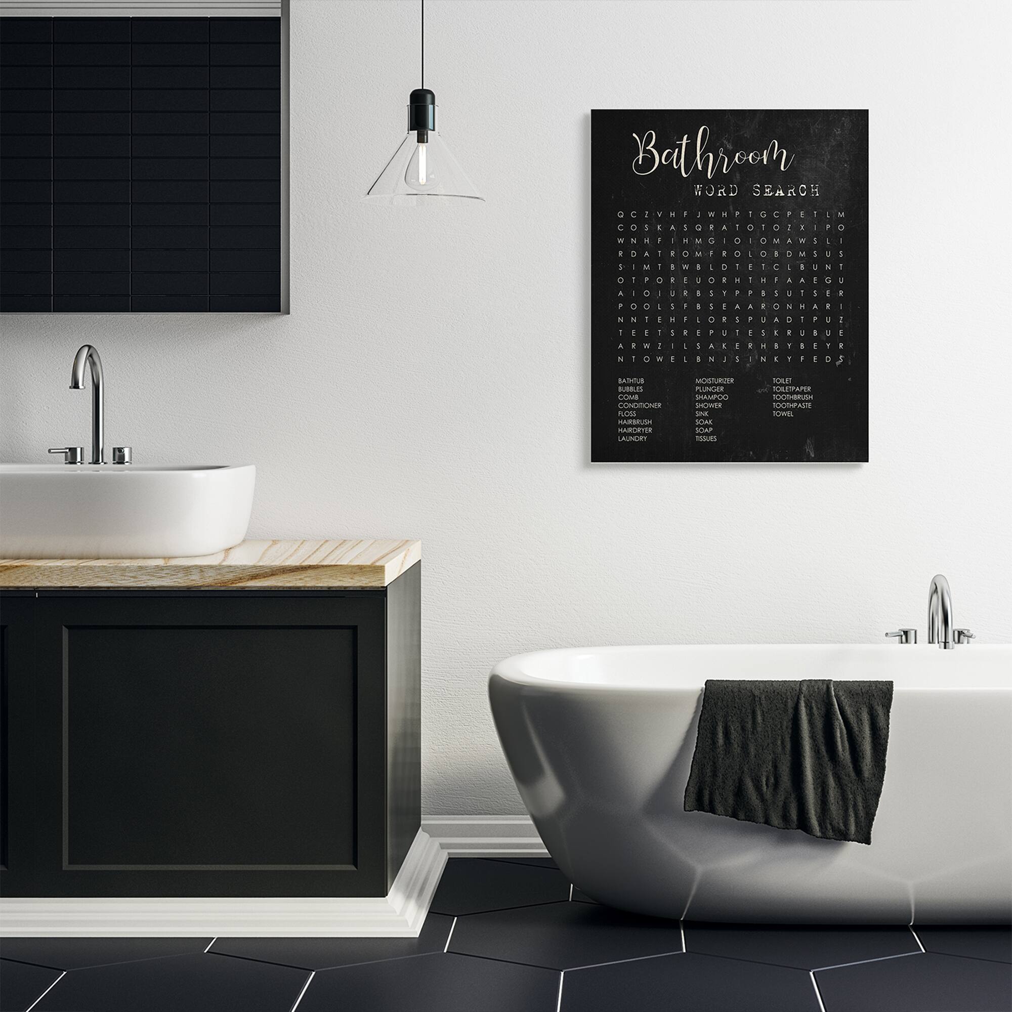 Stupell Industries Bathroom Word Search Activity over Distressed Black Canvas Wall Art