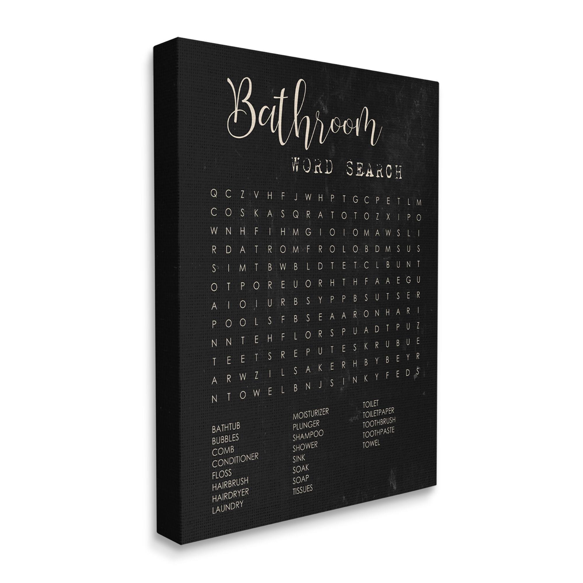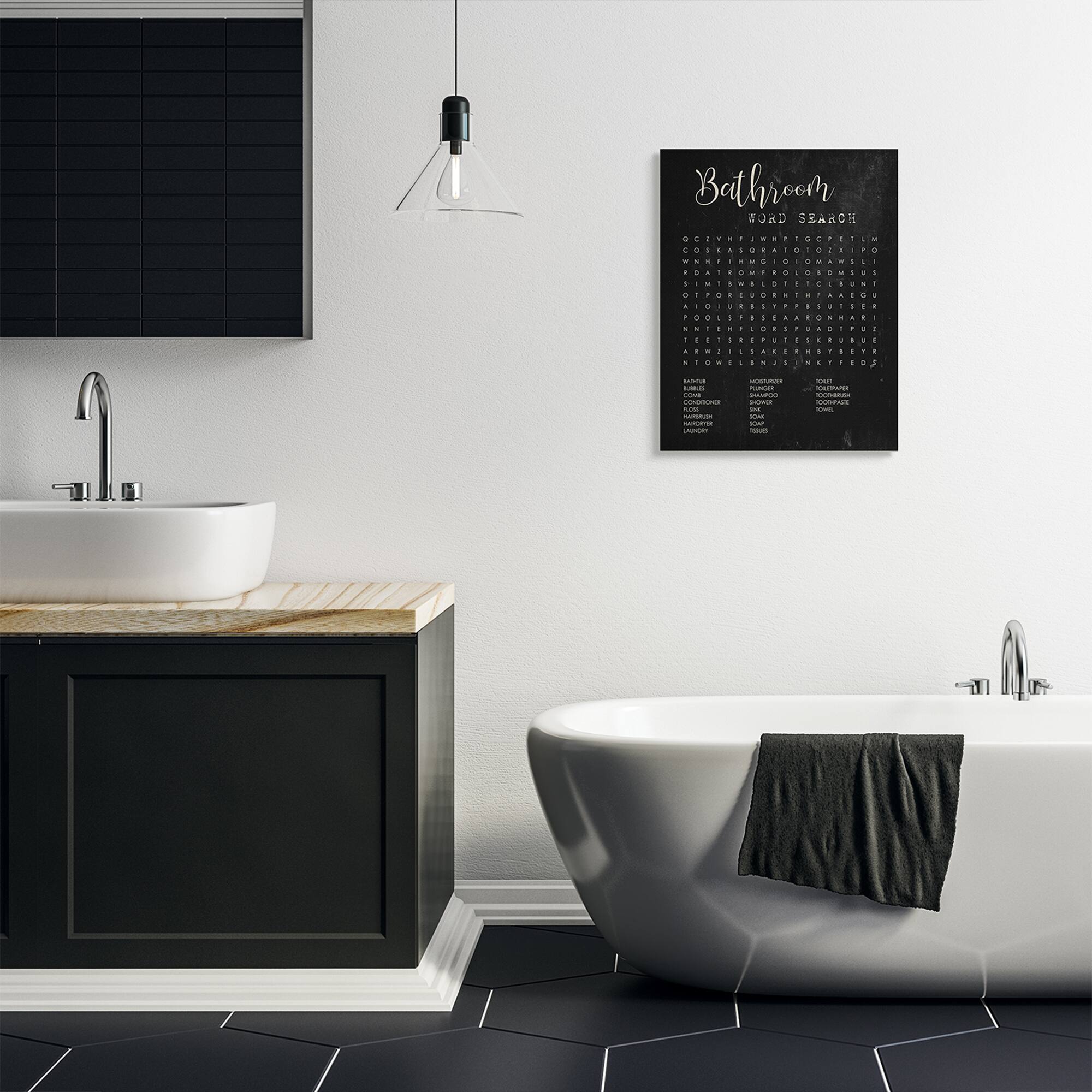 Stupell Industries Bathroom Word Search Activity over Distressed Black Canvas Wall Art