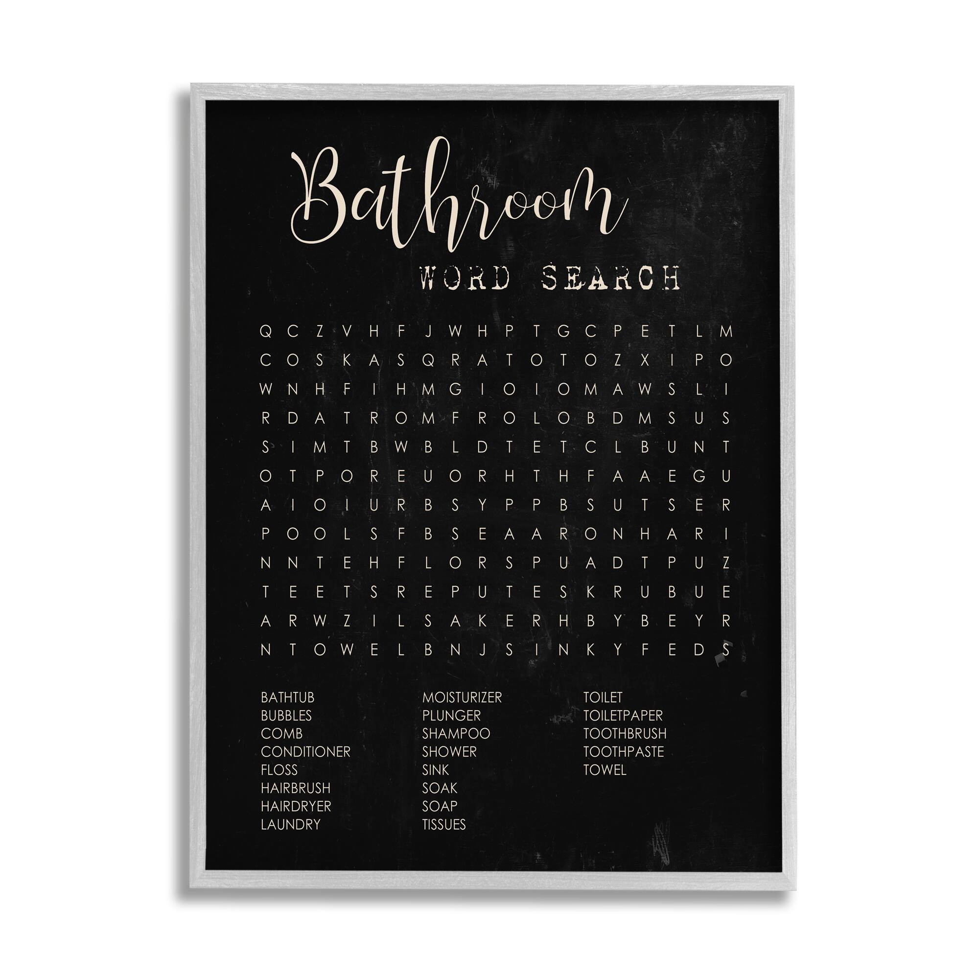 Stupell Industries Bathroom Word Search Activity over Distressed Black Framed Wall Art