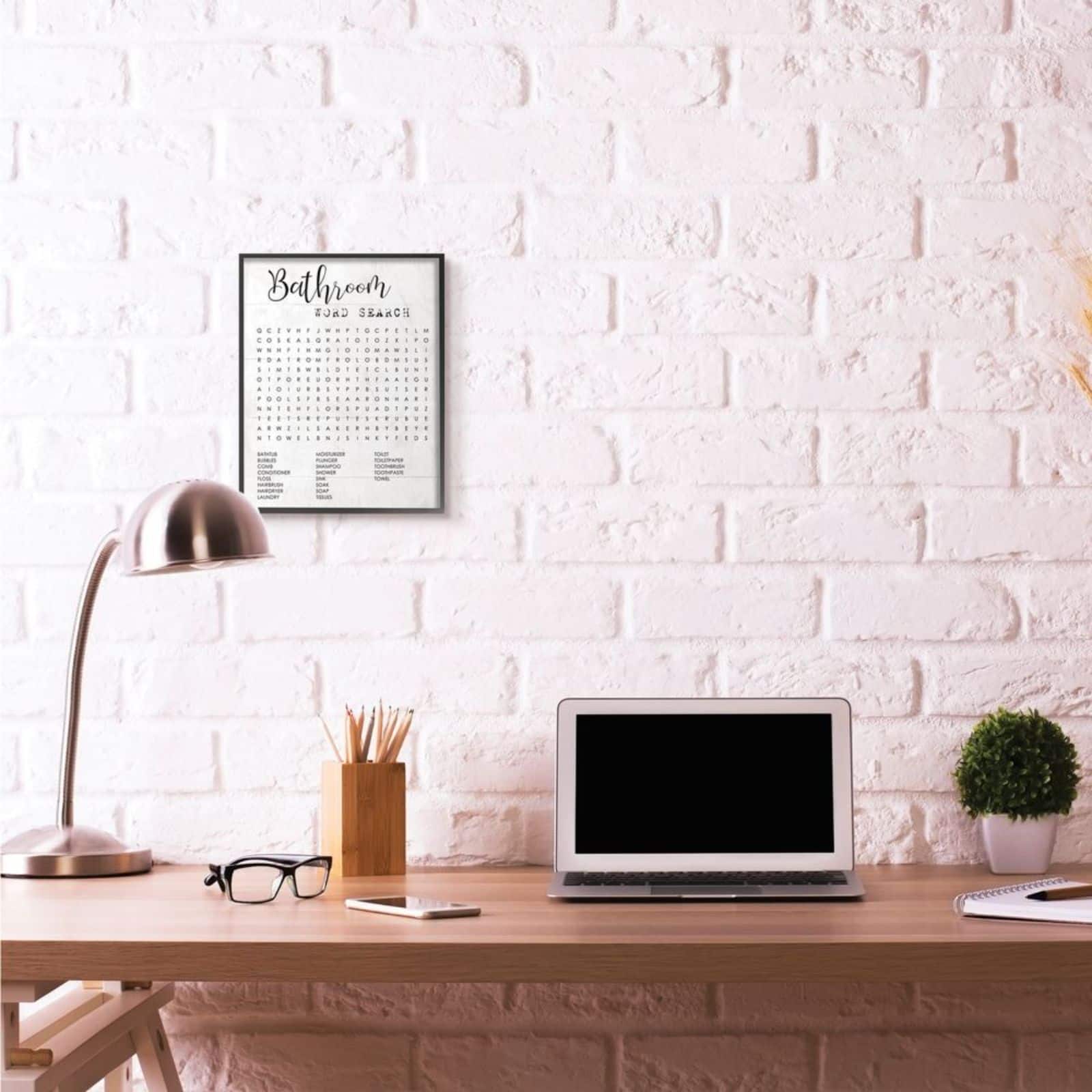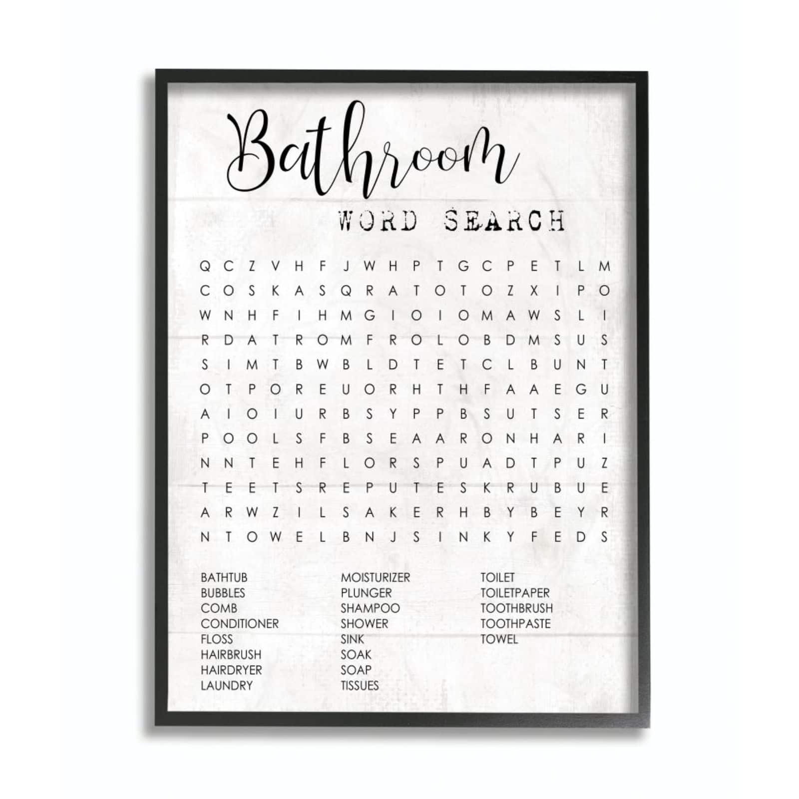 Stupell Industries Bathroom Word Search in Black Frame
