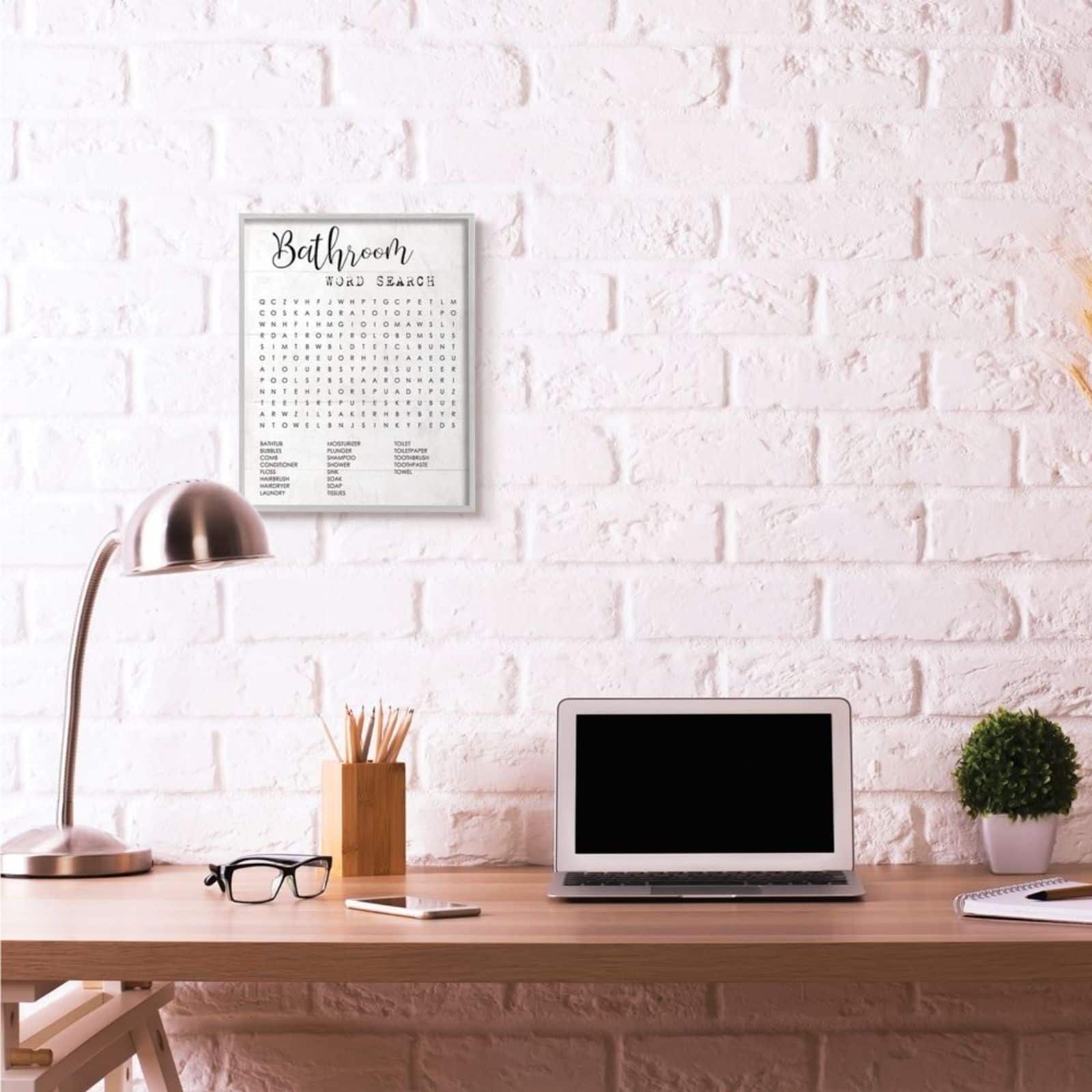 Stupell Industries Bathroom Word Search Wall Art in Gray Frame