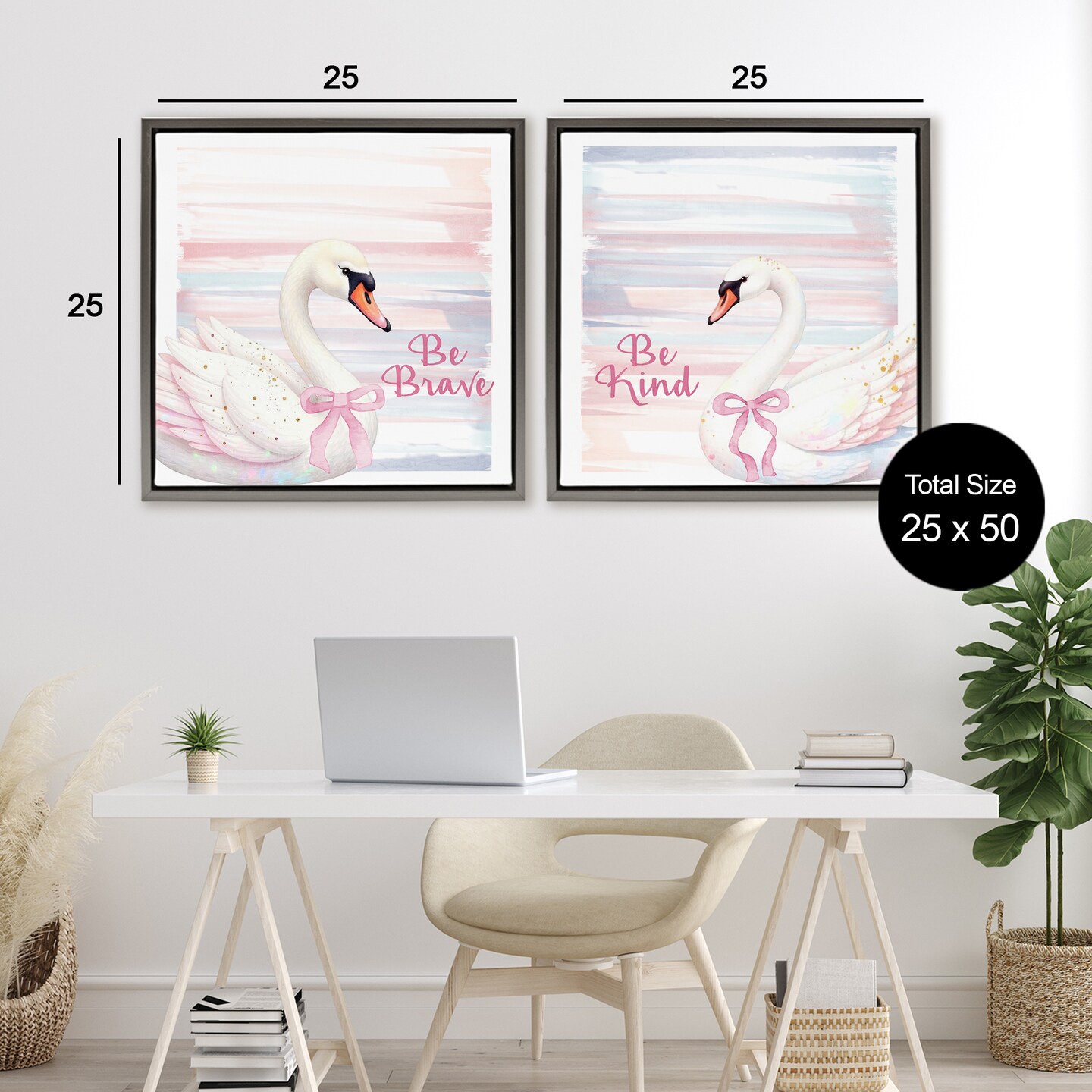 Stupell Industries Be Brave & Kind Pastel Swan 2pc Floating Frame Set, design by Kim Allen