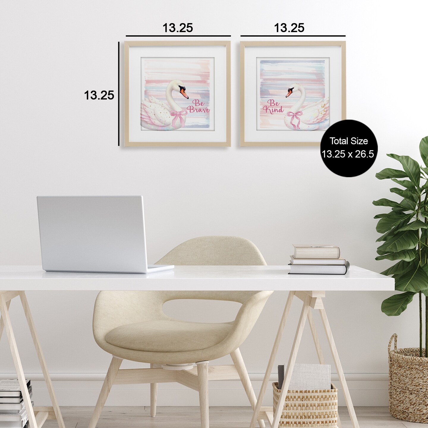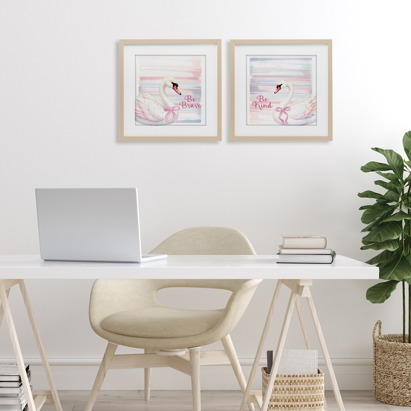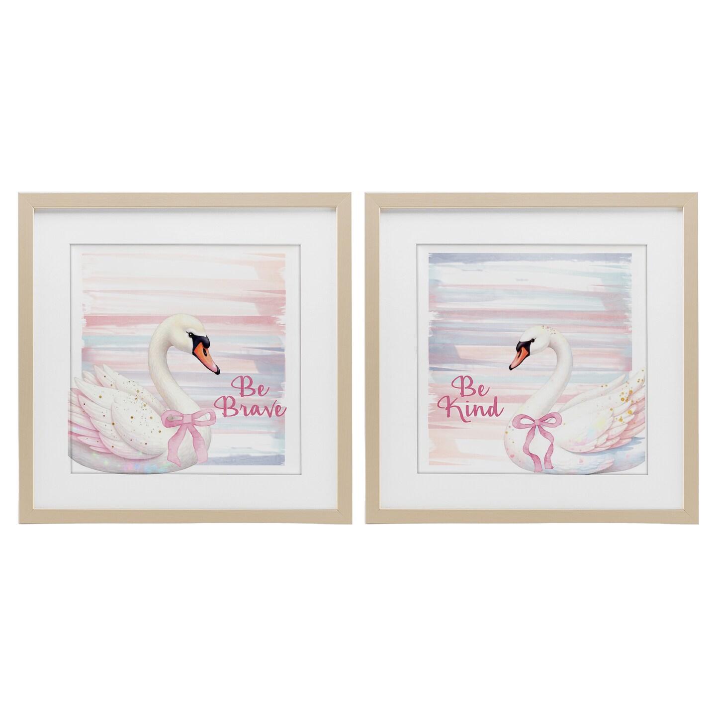 Stupell Industries Be Brave & Kind Pastel Swan 2pc Framed Print Under Glass Set, design by Kim Allen