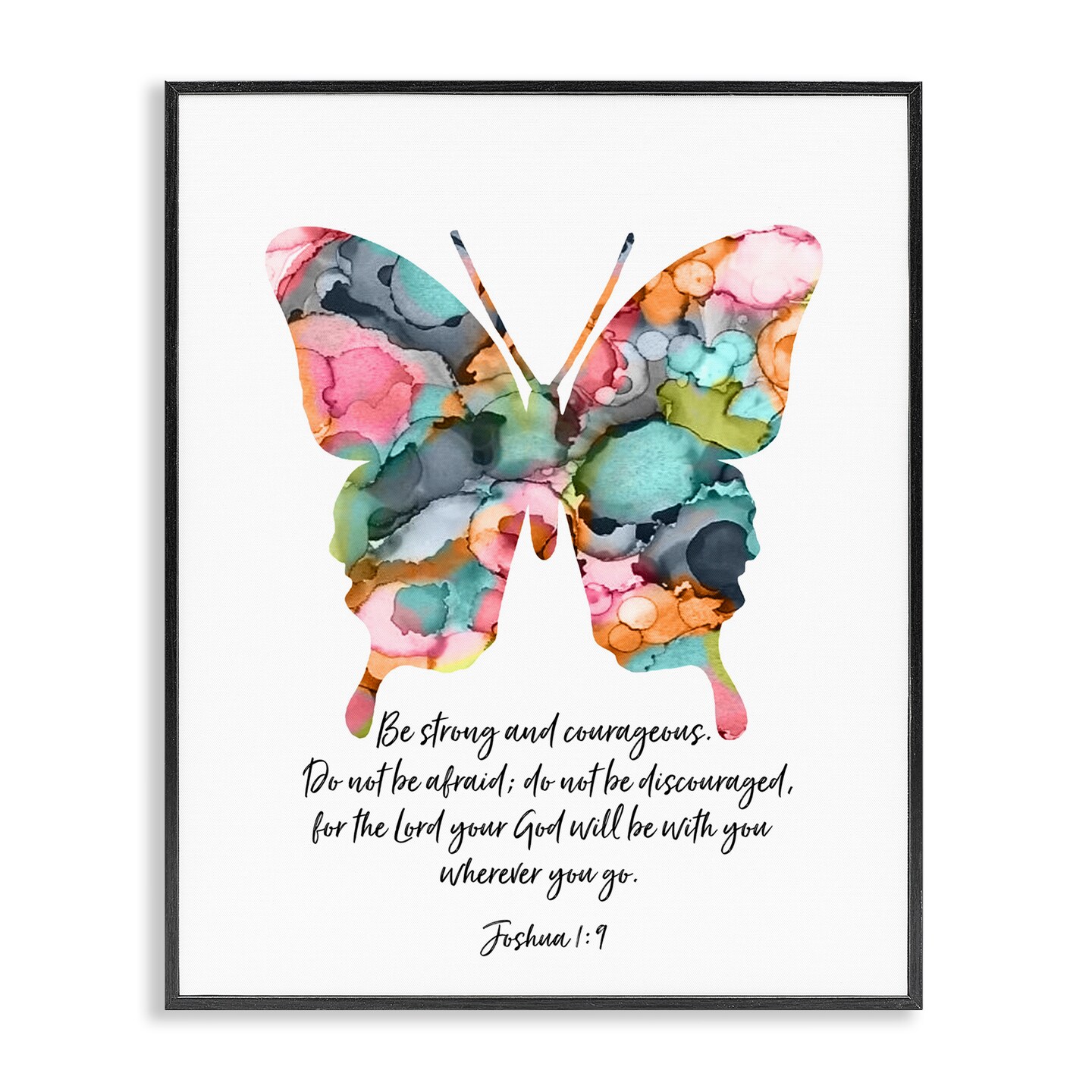 Stupell Industries Be Strong Joshua 1:9 Butterfly Framed Giclee By Lisa Nohren