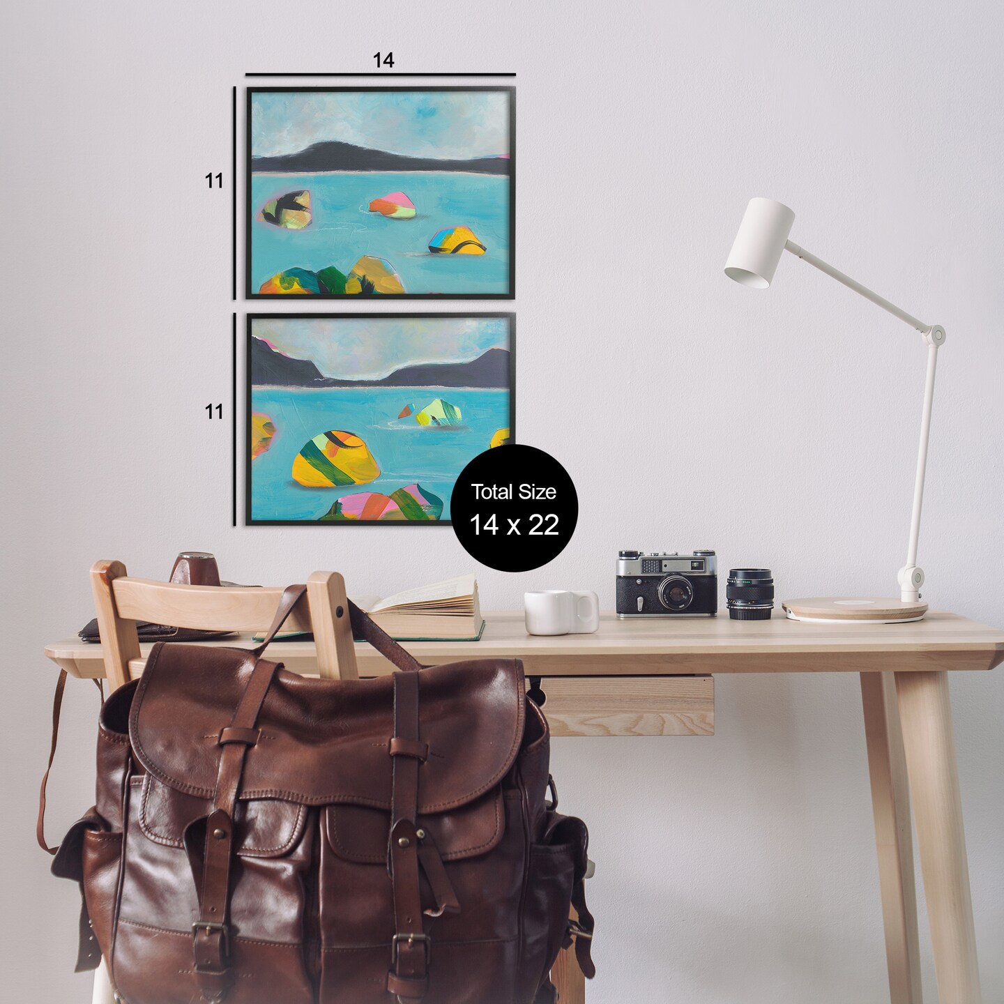 Stupell Industries Beach Buoys in Sea 2pc Framed Giclee Wall Art Set Design by Jan Weiss