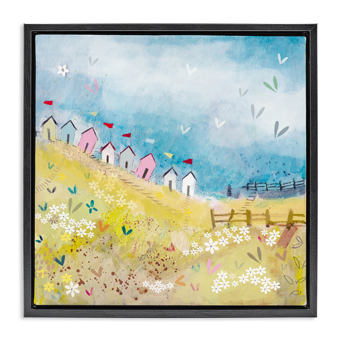 Stupell Industries Beach Huts on Hillside Floating Frame, design by Clare Tupper