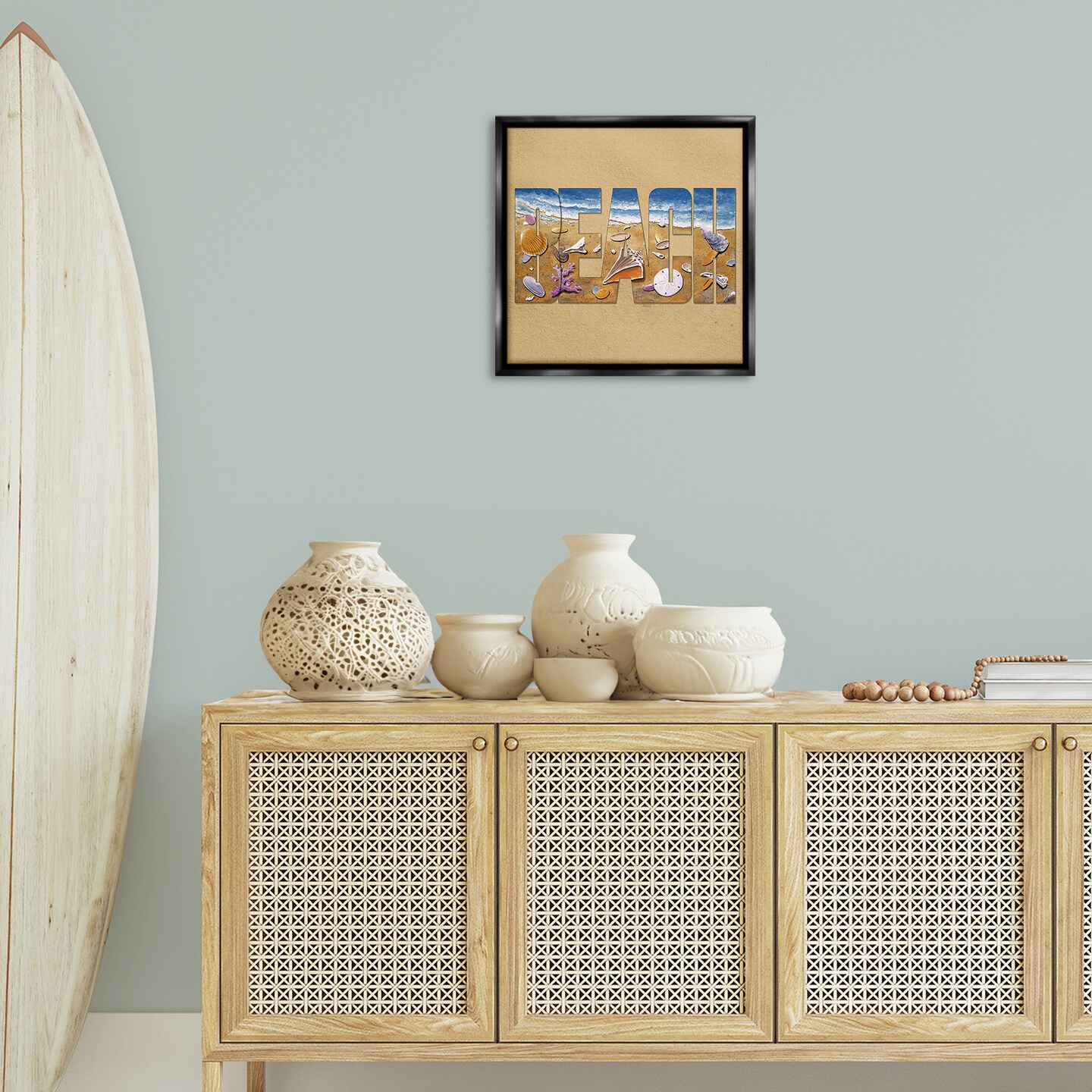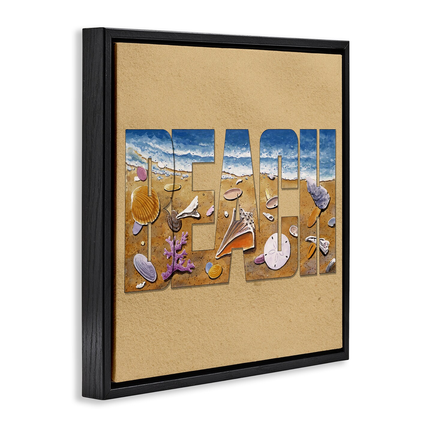 Stupell Industries Beach Letters Outline Framed Floater Canvas Wall Art Design by Art Brands Holdings, LLC.