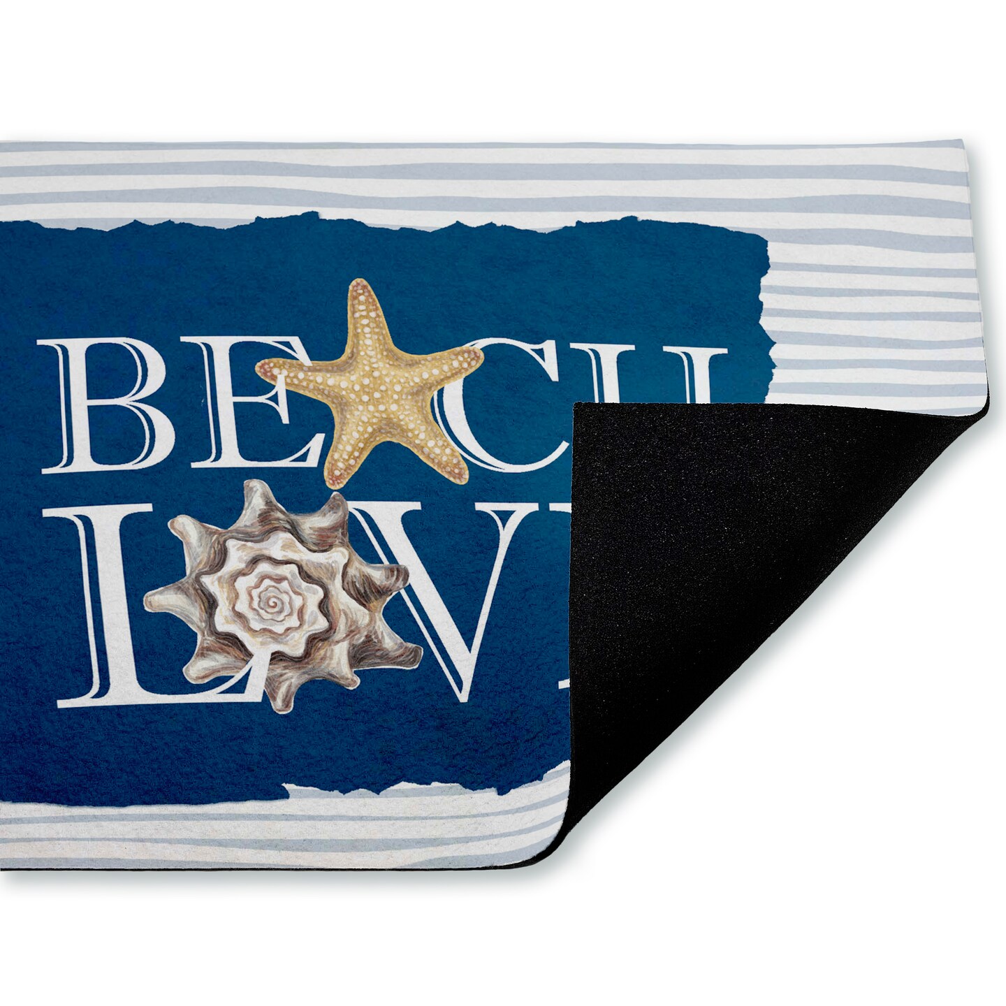 Stupell Industries Beach Love over Stripes Printed Outdoor Door Mat, design by Kim Allen, 18"x30"