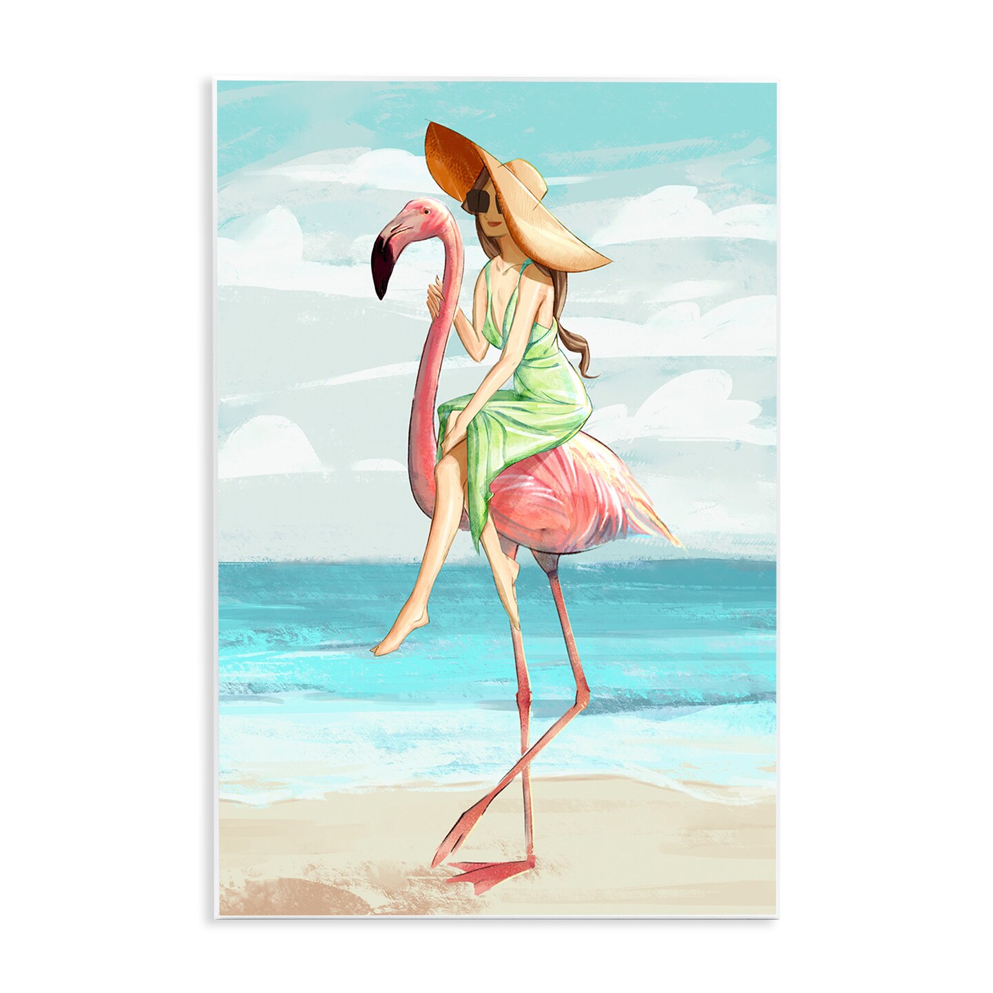 Stupell Industries Beach Woman Riding Flamingo Wall Plaque Art