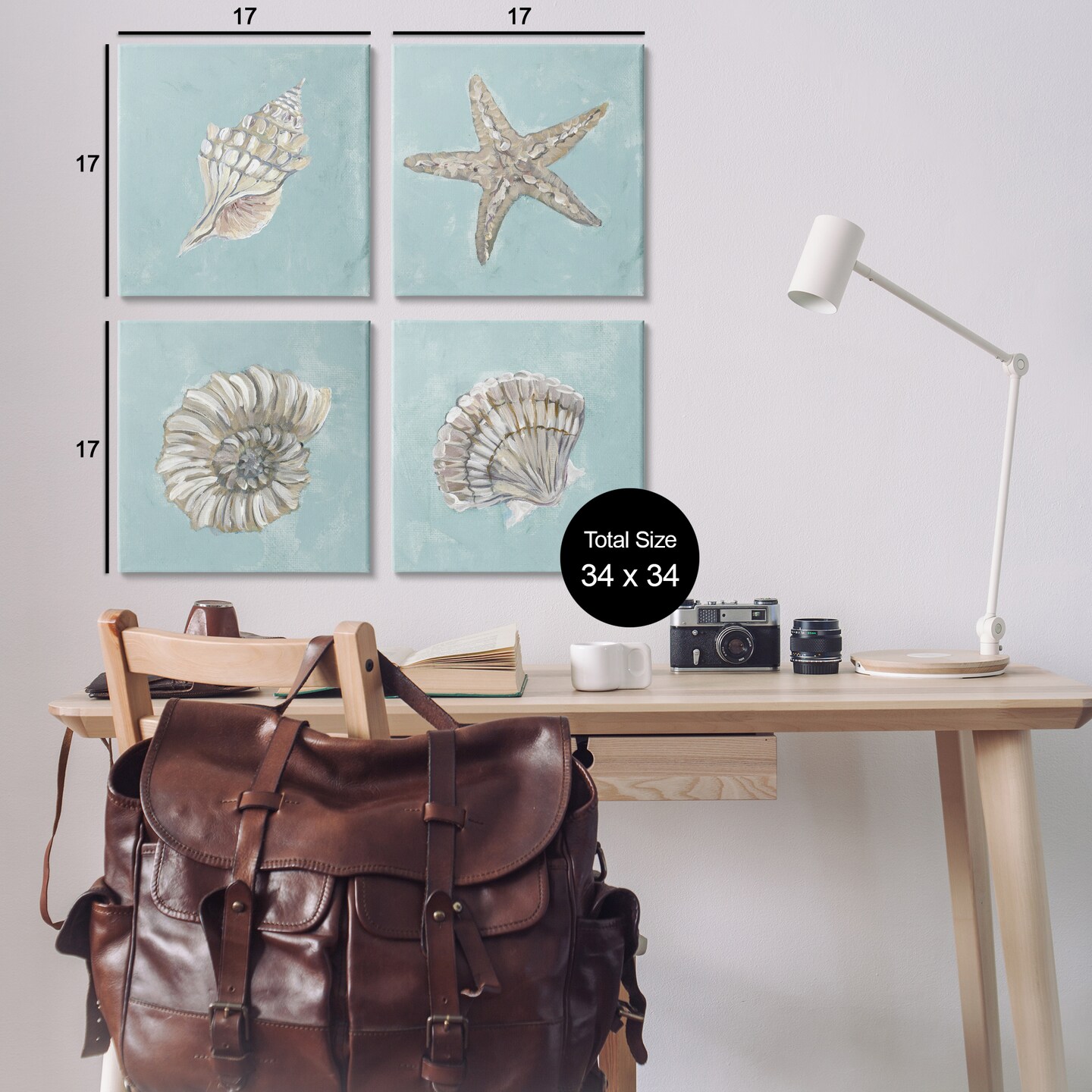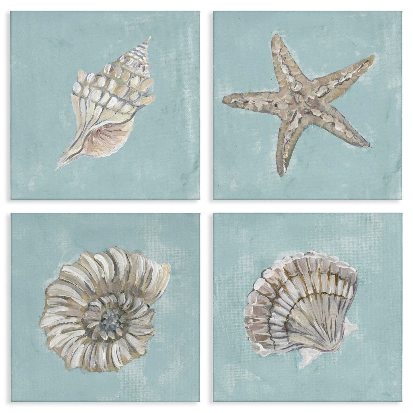 Stupell Industries Beige & Blue Sea Life 4 pc Canvas Wall Art Set Design by Julie Derice