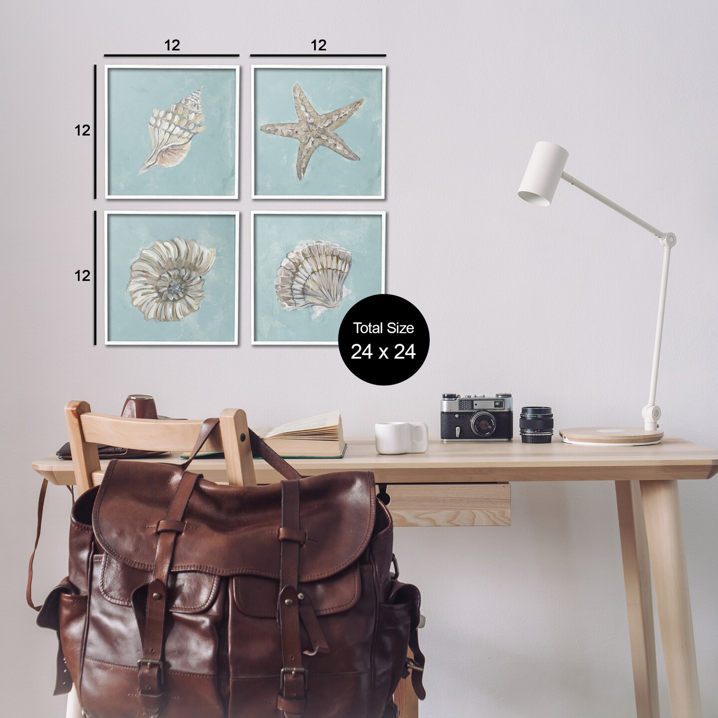 Stupell Industries Beige & Blue Sea Life 4 pc Framed Giclee Wall Art Set Design by Julie Derice
