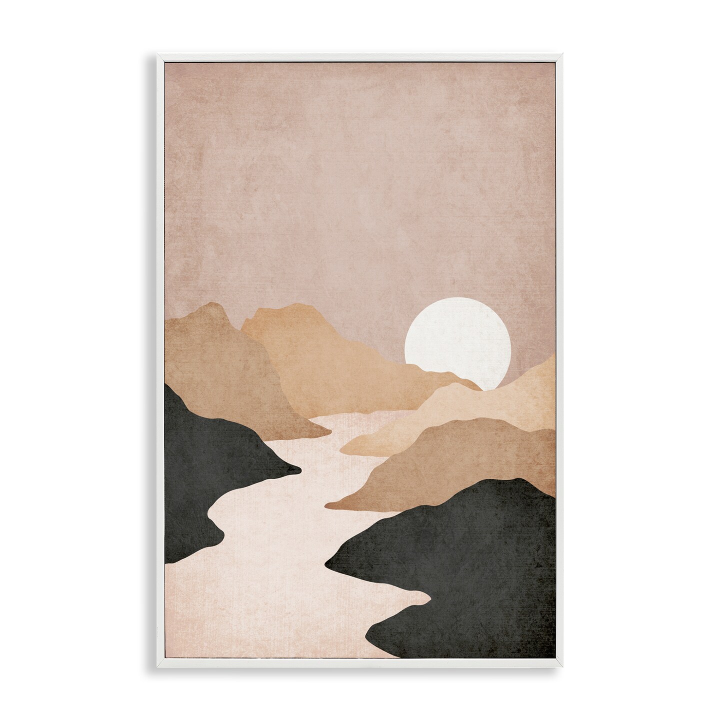 Stupell Industries Beige Mountains with Stream Framed Giclee Wall Art Design by JJ Design House LLC