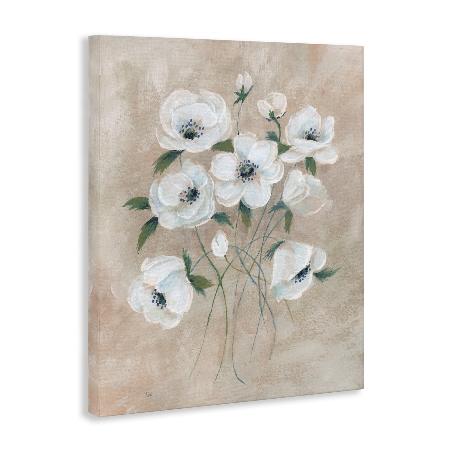 Stupell Industries Beige Neutral Flowers Canvas Wall Art Design by Nan