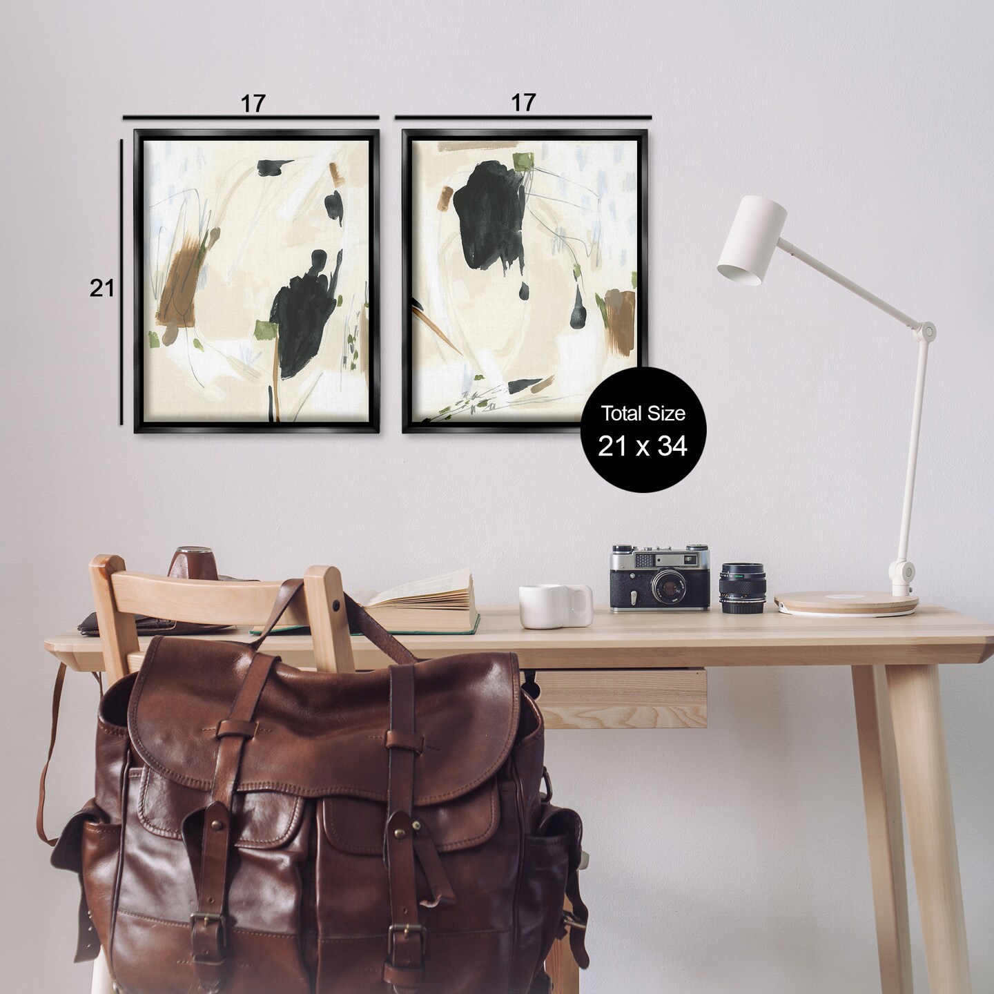 Stupell Industries Beige Olive Abstract Classic 2 pc Framed Floater Canvas Wall Art Set Design by June Erica Vess