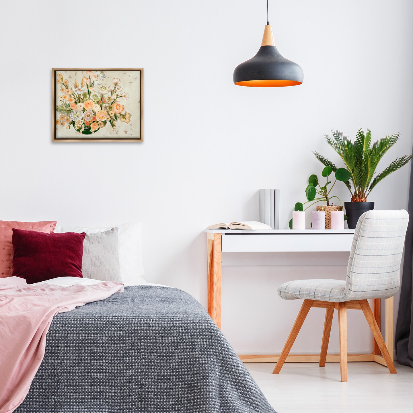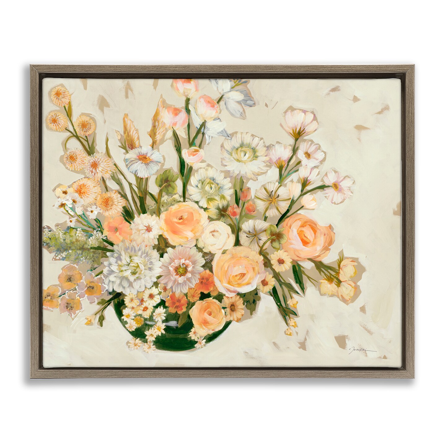 Stupell Industries Beige Shabby Chic Flowers Framed Floater Canvas Wall Art Design by Liz Jardine